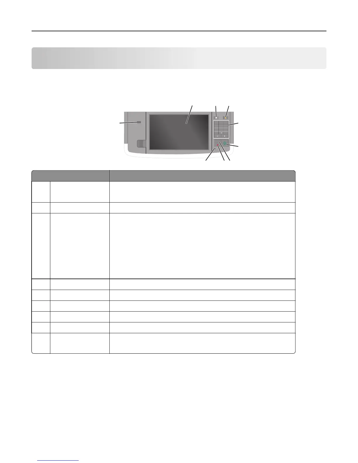 6 Clear All / Reset button Reset the default settings of a function, such as copying, faxing, or scanning.