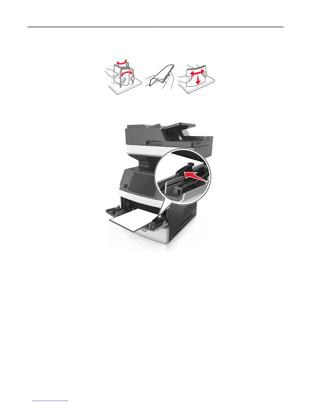 2 Flex the sheets back and forth to loosen them, and then fan them. Do not fold or crease the paper. Straighten the