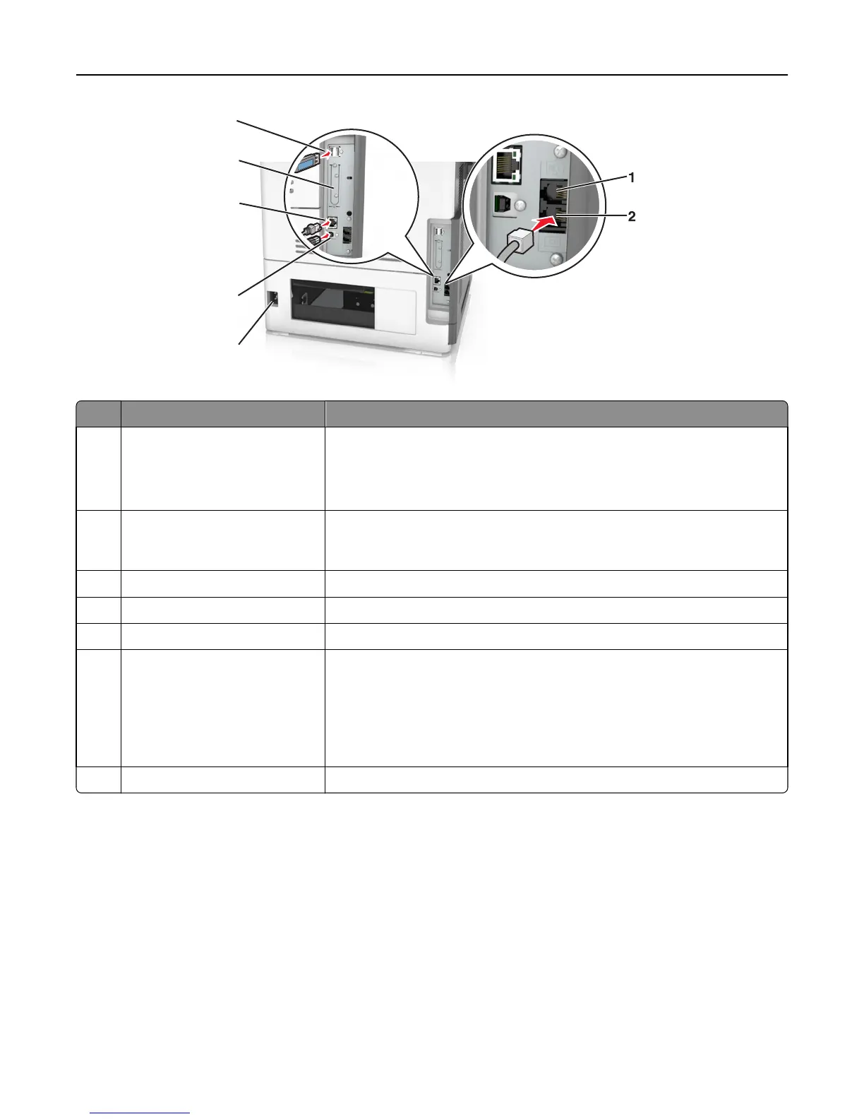 5 Ethernet port Connect the printer to a network.