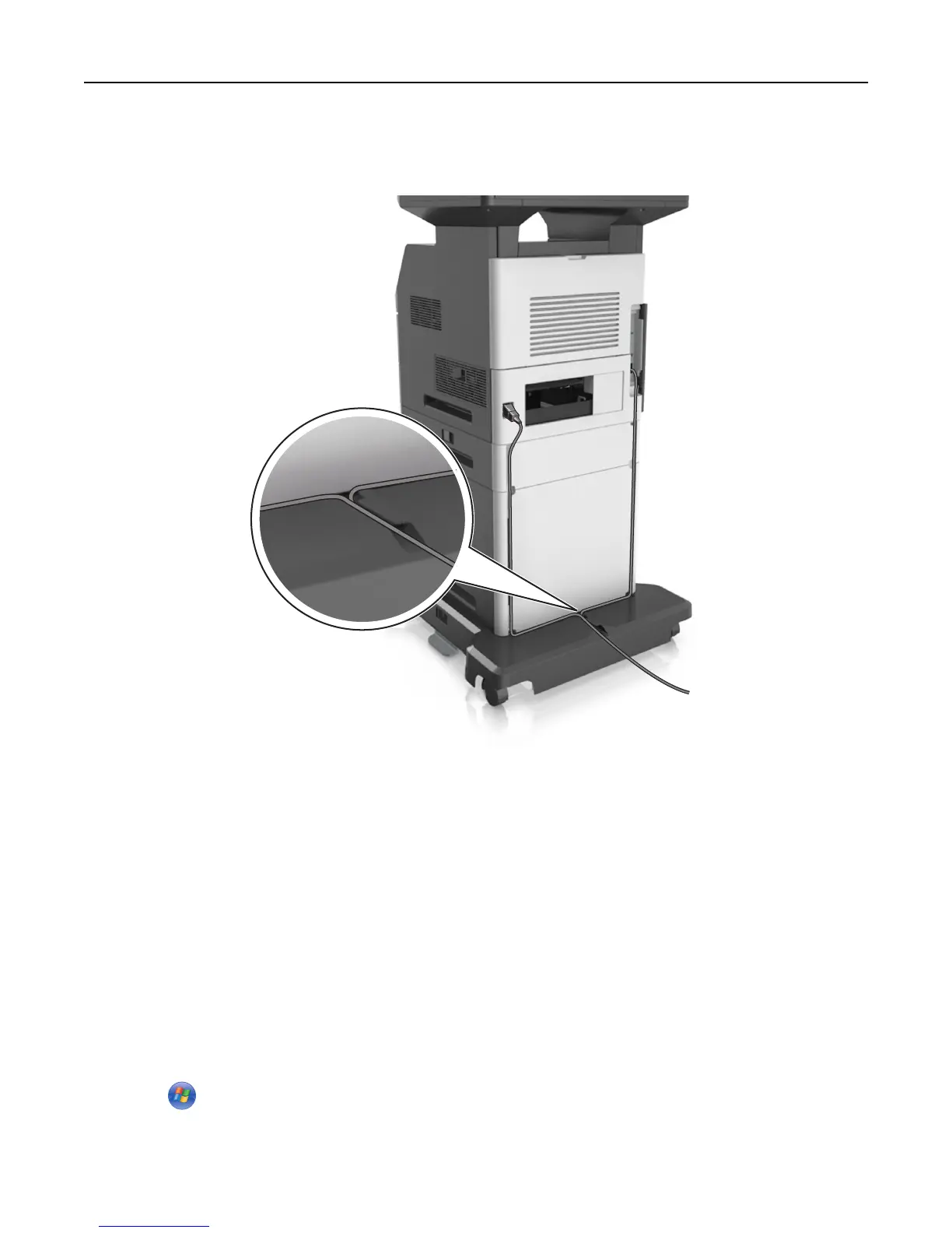 Attach the Ethernet cable and power cord, and then neatly tuck the cables in the channels at the back of the printer.