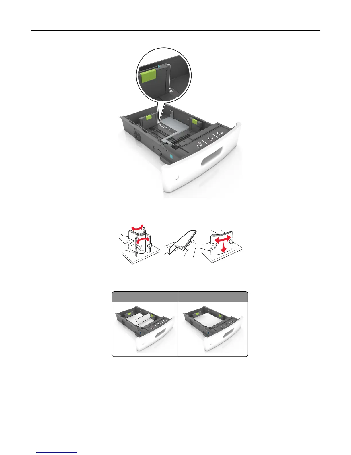 4 Flex the sheets back and forth to loosen them, and then fan them. Do not fold or crease the paper. Straighten the