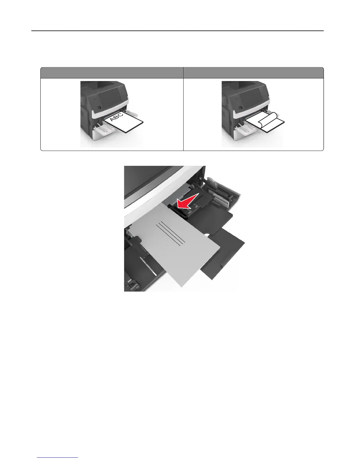 • Load envelopes with the flap side down and on the left of the multipurpose feeder.