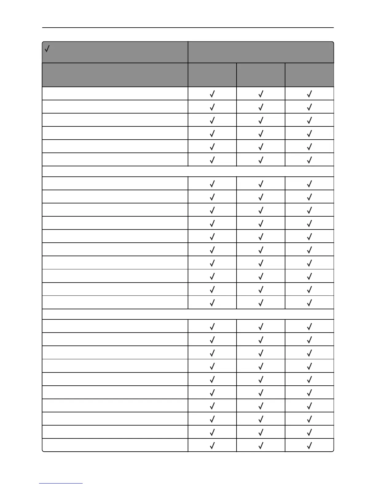 X = Not supported