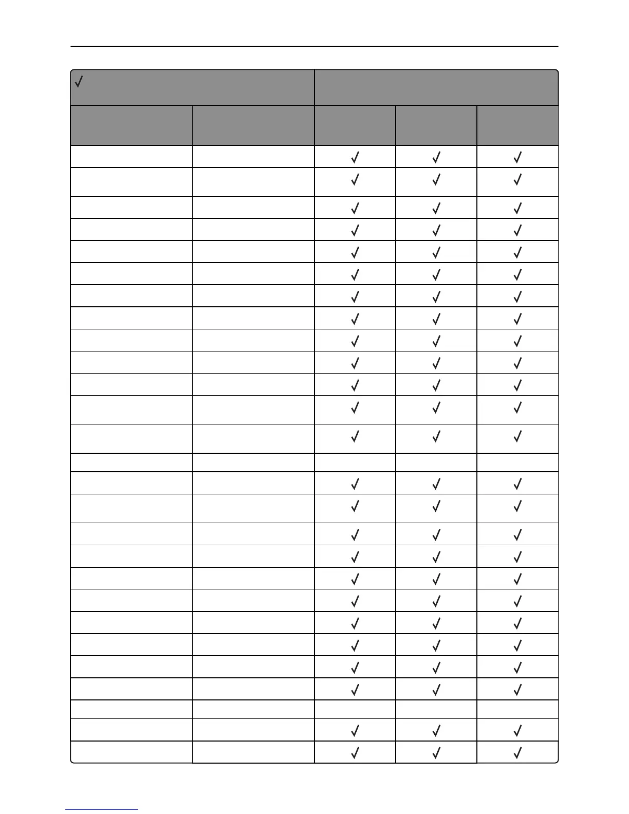 X = Not supported