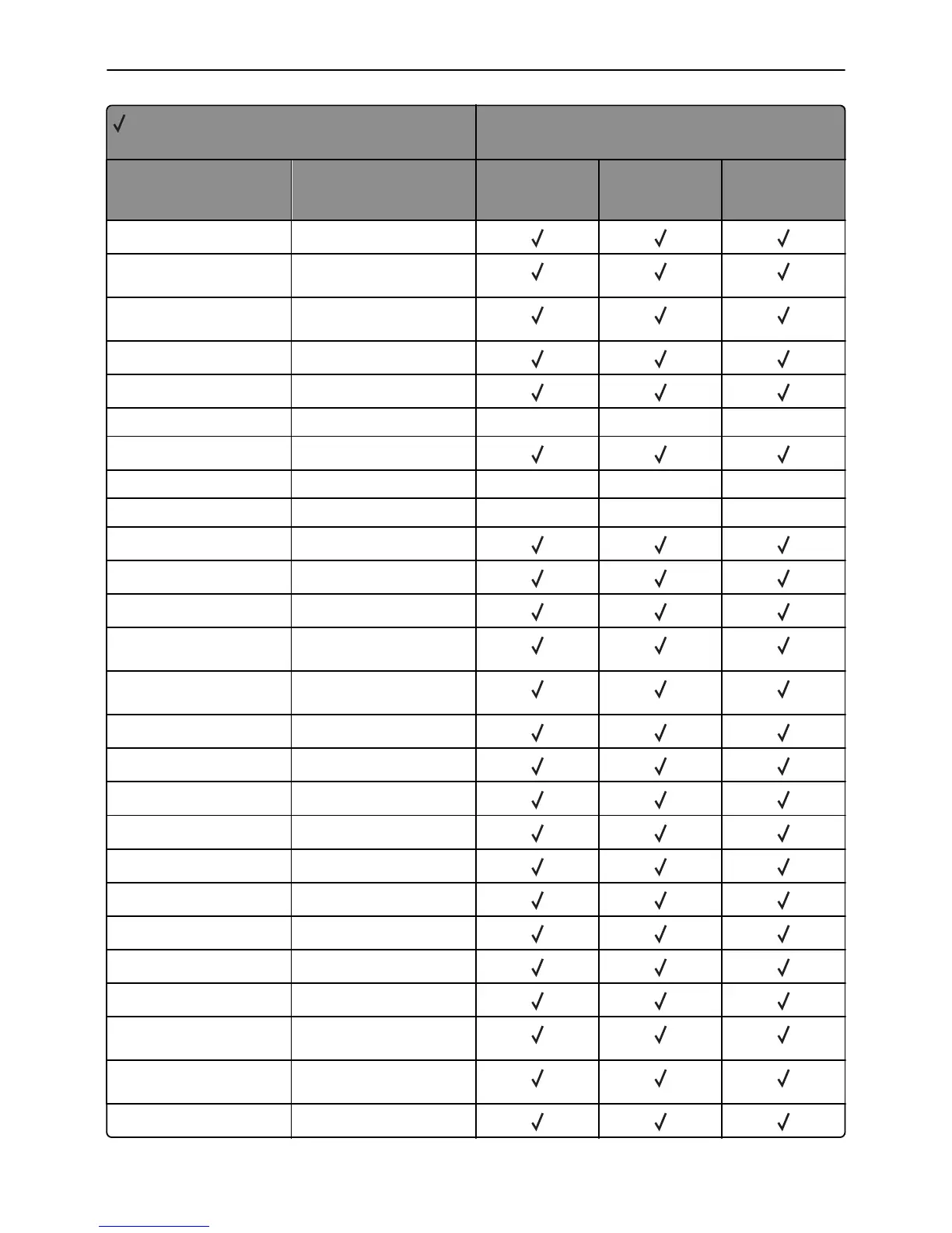 X = Not supported