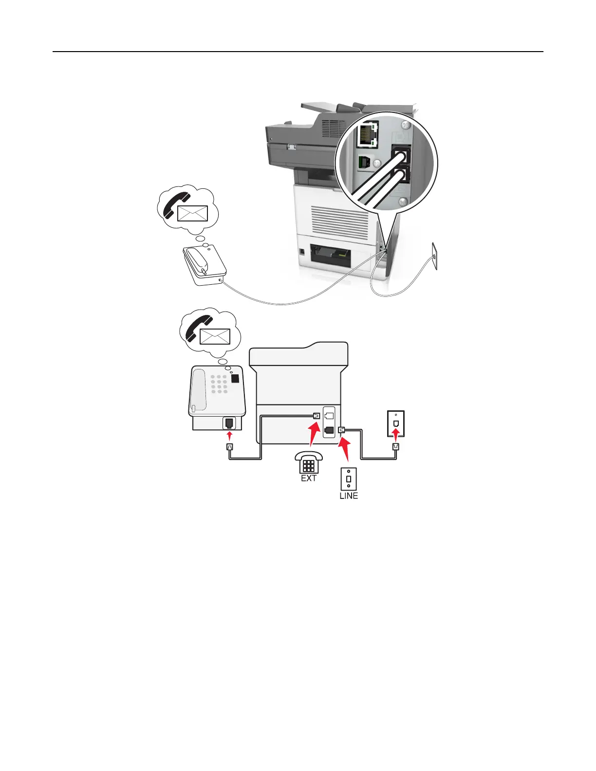 3 Connect the telephone to the telephone port of the printer.