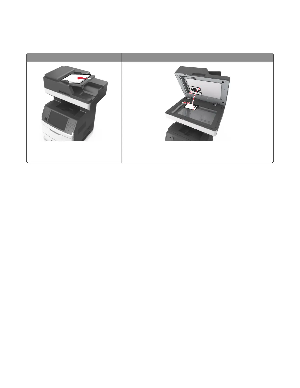 a Load an original document faceup, short edge first into the ADF tray or facedown on the scanner glass.