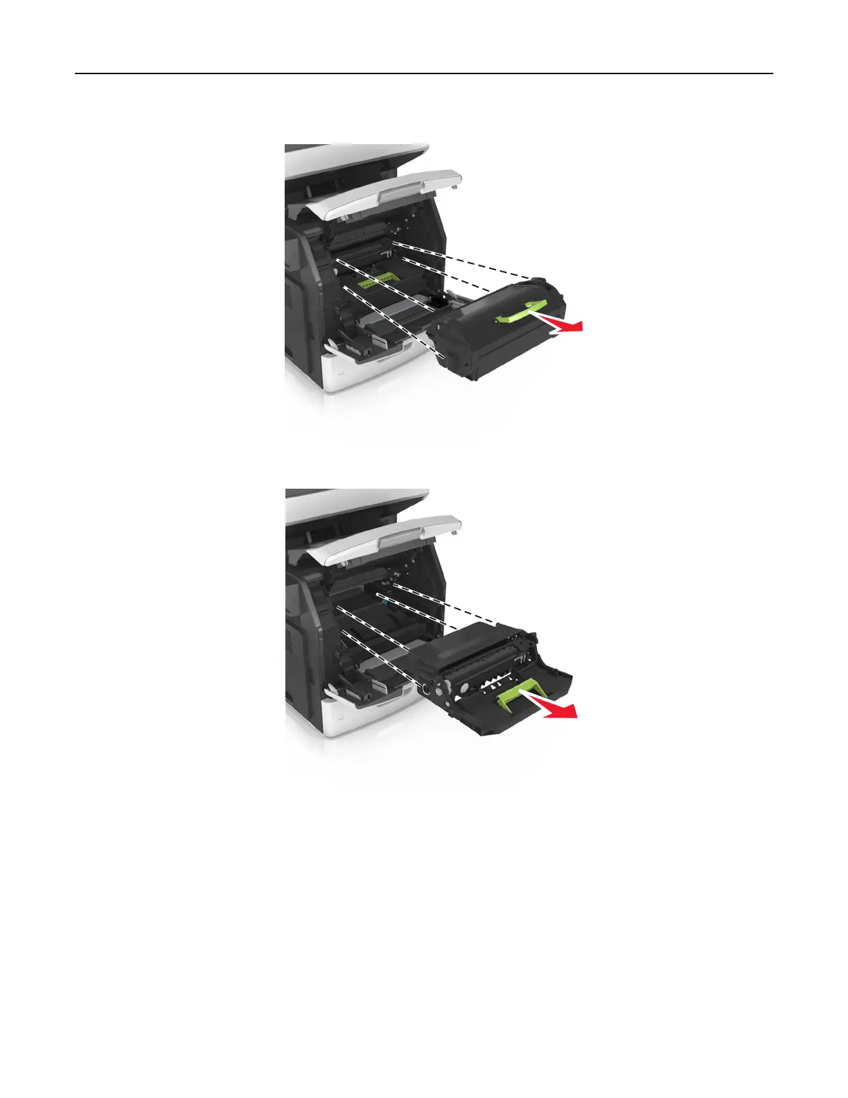 3 Lift the green handle, and then pull out the imaging unit from the printer.