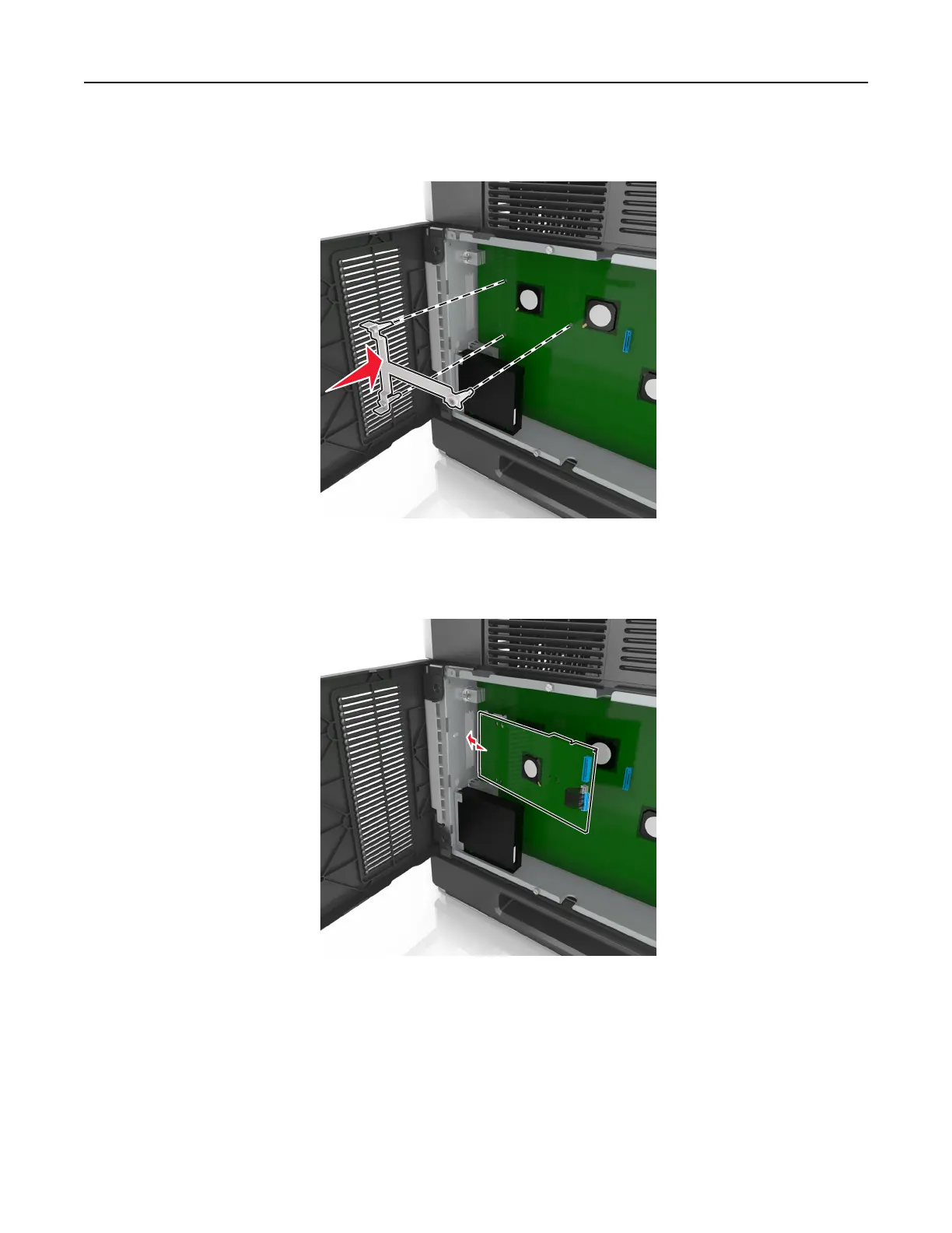 5 Align the posts of the plastic bracket to the holes on the controller board cage, and then press the plastic