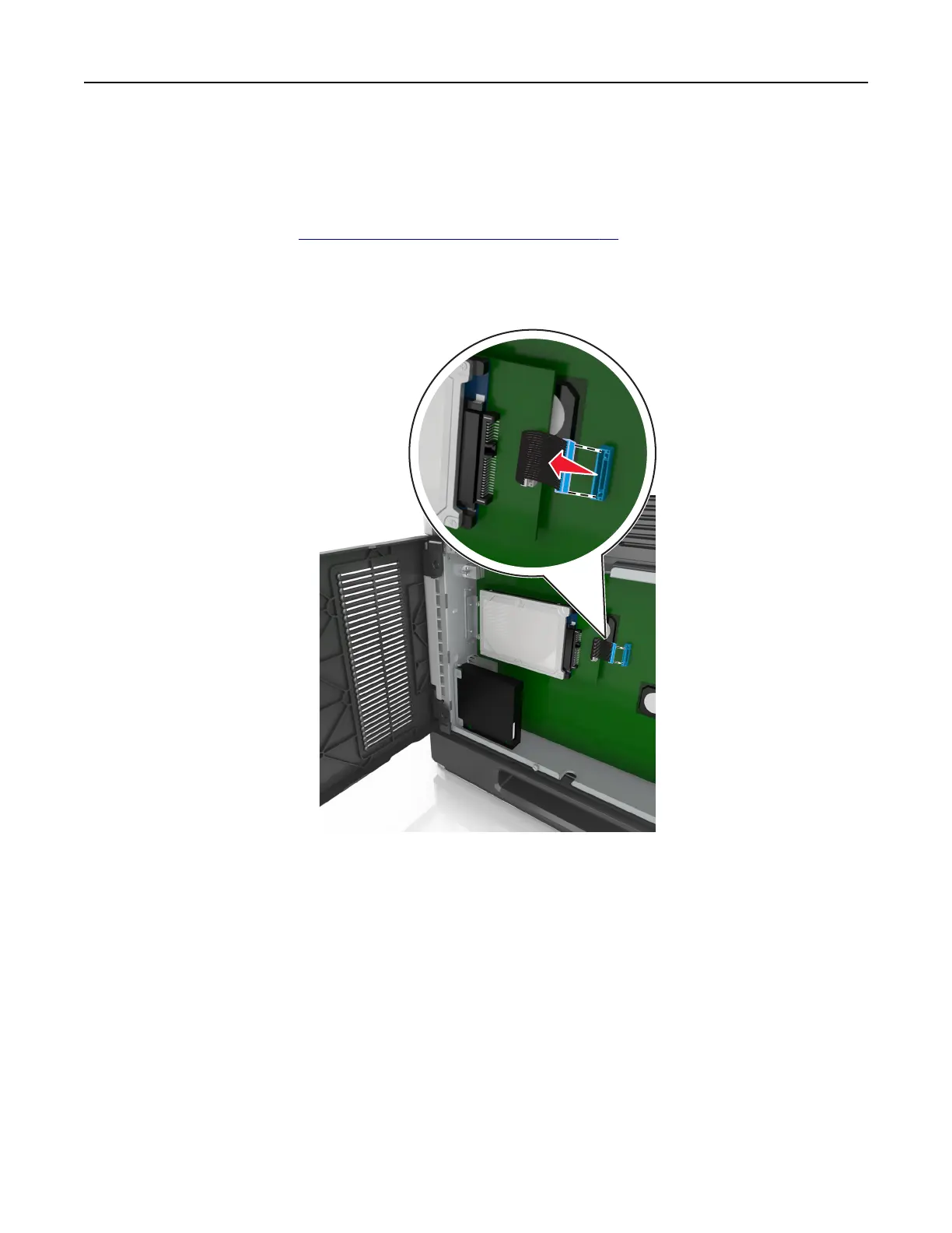 2 Unplug the printer hard disk interface cable from the controller board, leaving the cable attached to the