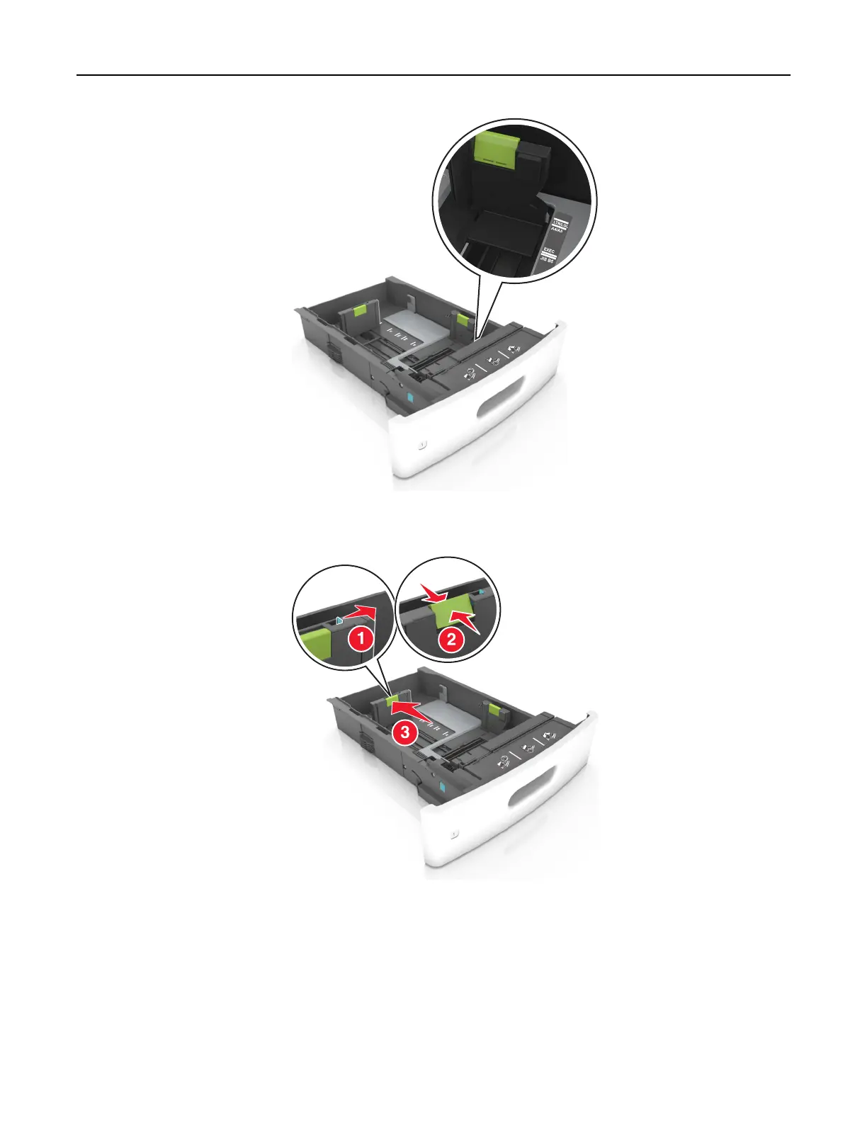 Use the paper size indicators at the bottom of the tray to help position the guides.