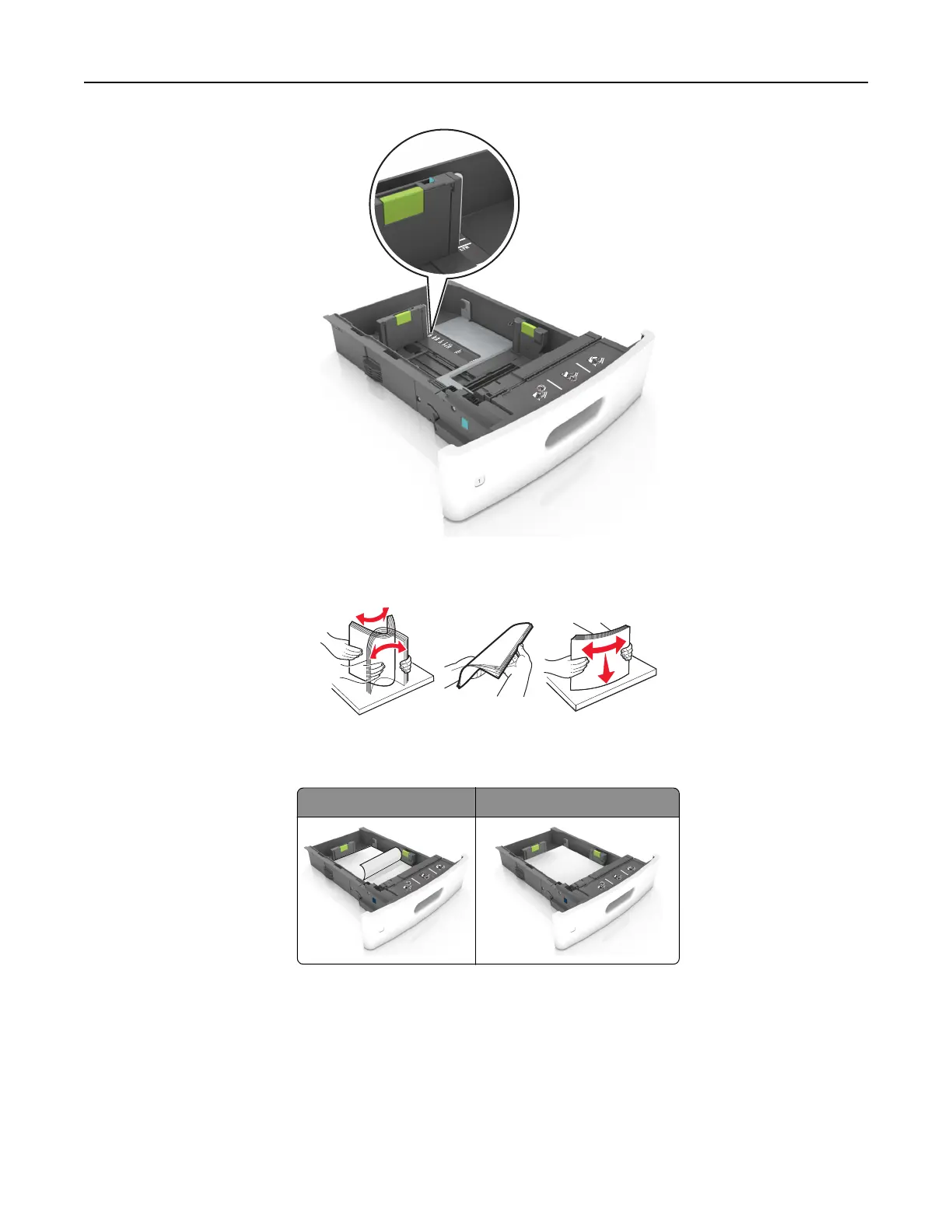 4 Flex the sheets back and forth to loosen them, and then fan them. Do not fold or crease the paper. Straighten