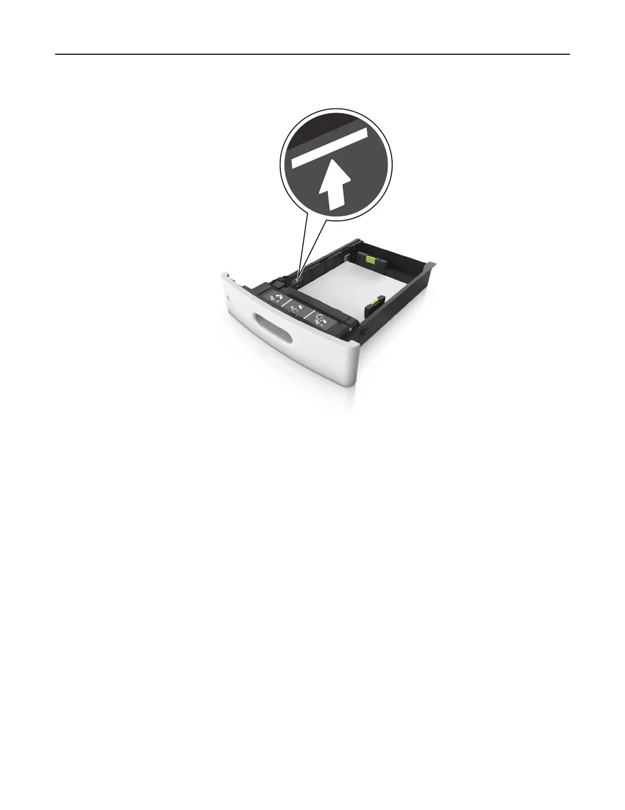 Make sure the paper is below the solid line, which is the maximum paper fill indicator.