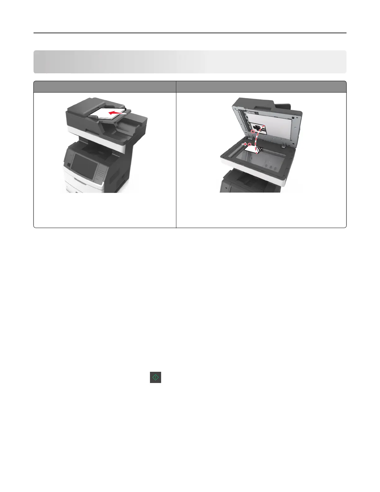 1 Load an original document faceup, short edge first into the ADF tray or facedown on the scanner glass.