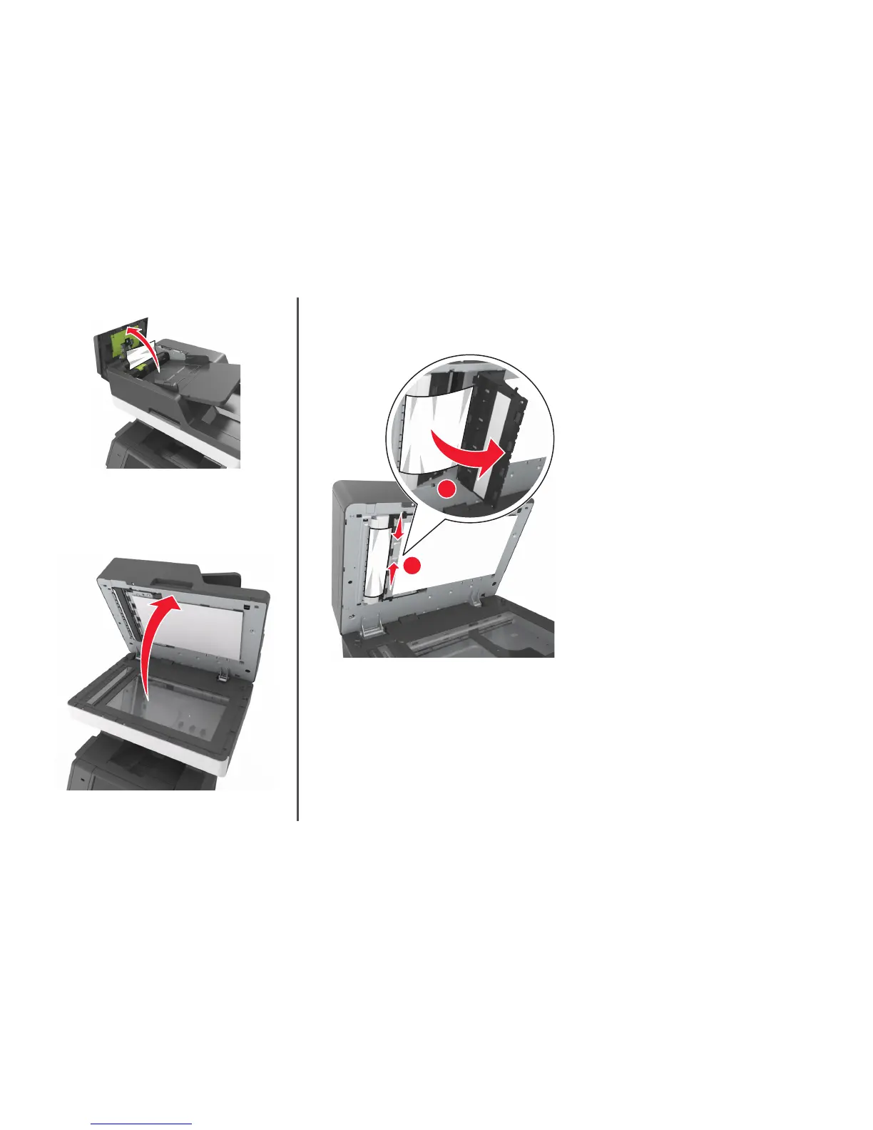 6 If the jam is in the bottom ADF door or ADF exit bin, then open the