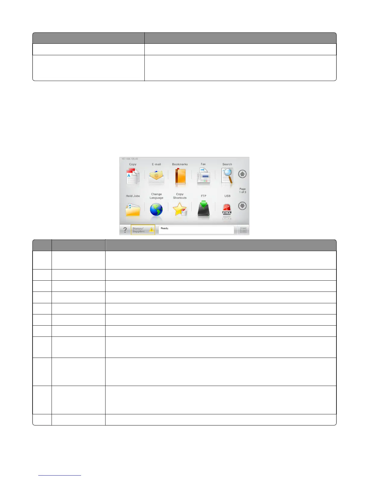 When the printer is turned on, the display shows a basic screen, referred to as the home screen. Touch the home screen