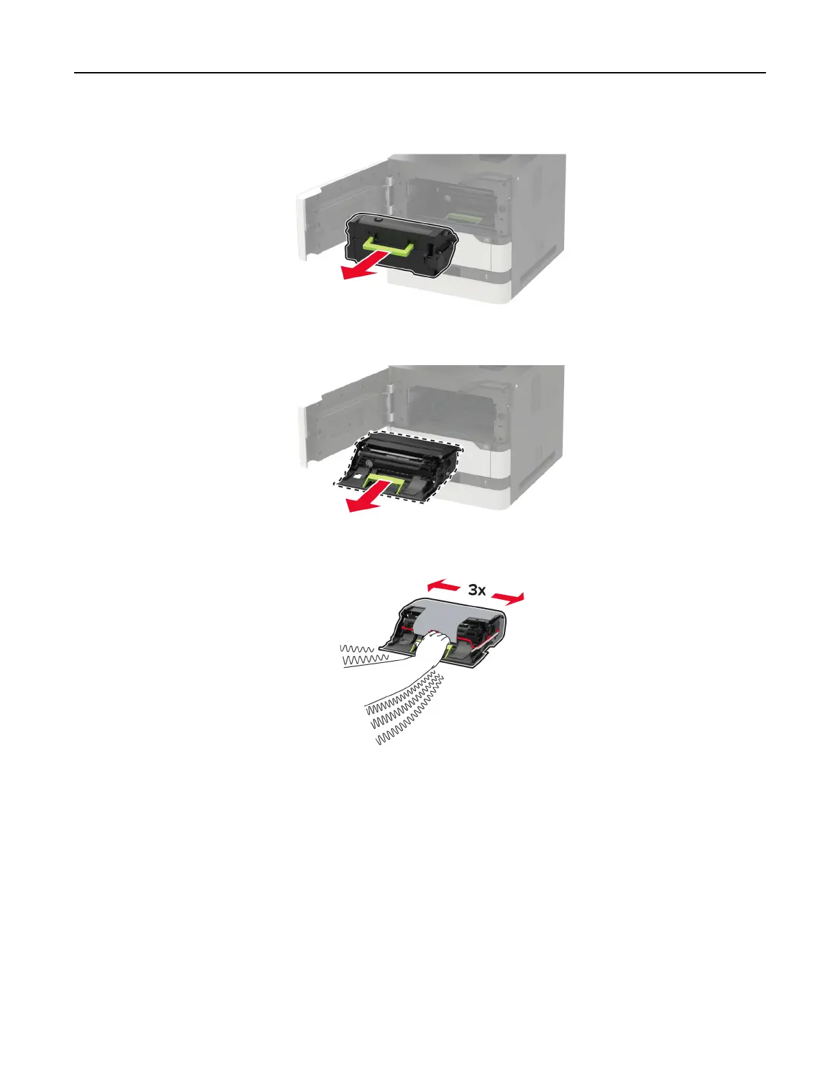 4 Unpack the new imaging unit, and then shake it to redistribute the toner.