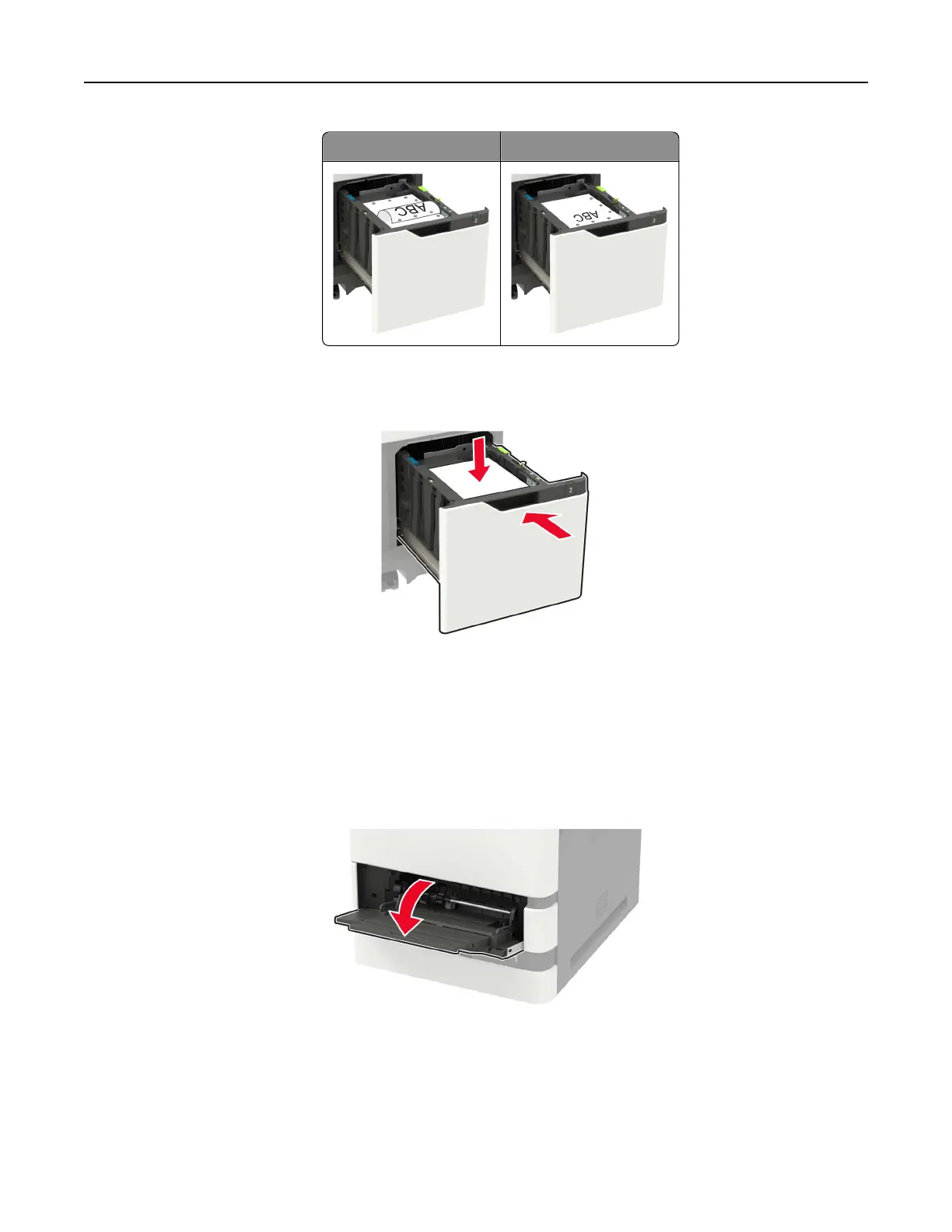 Note: Press down the paper stack while inserting the tray.