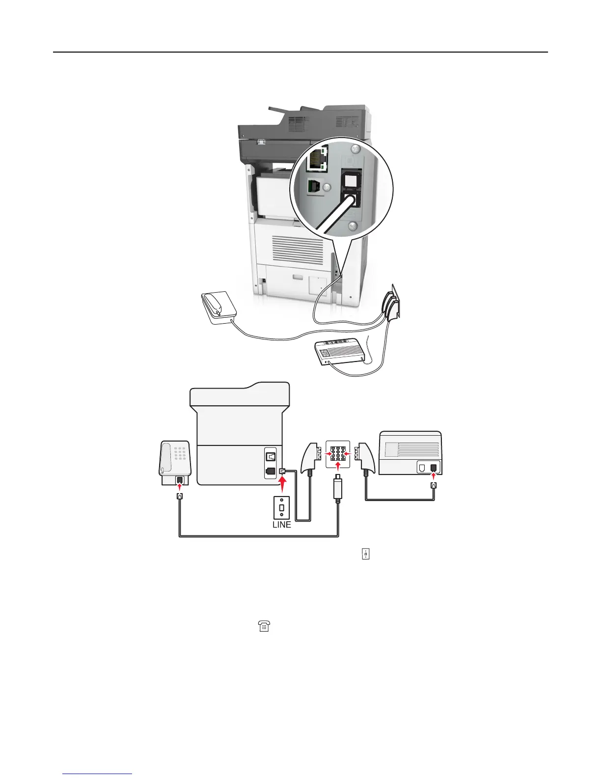 1 Connect one end of the telephone cable that came the printer to the port of the printer.
