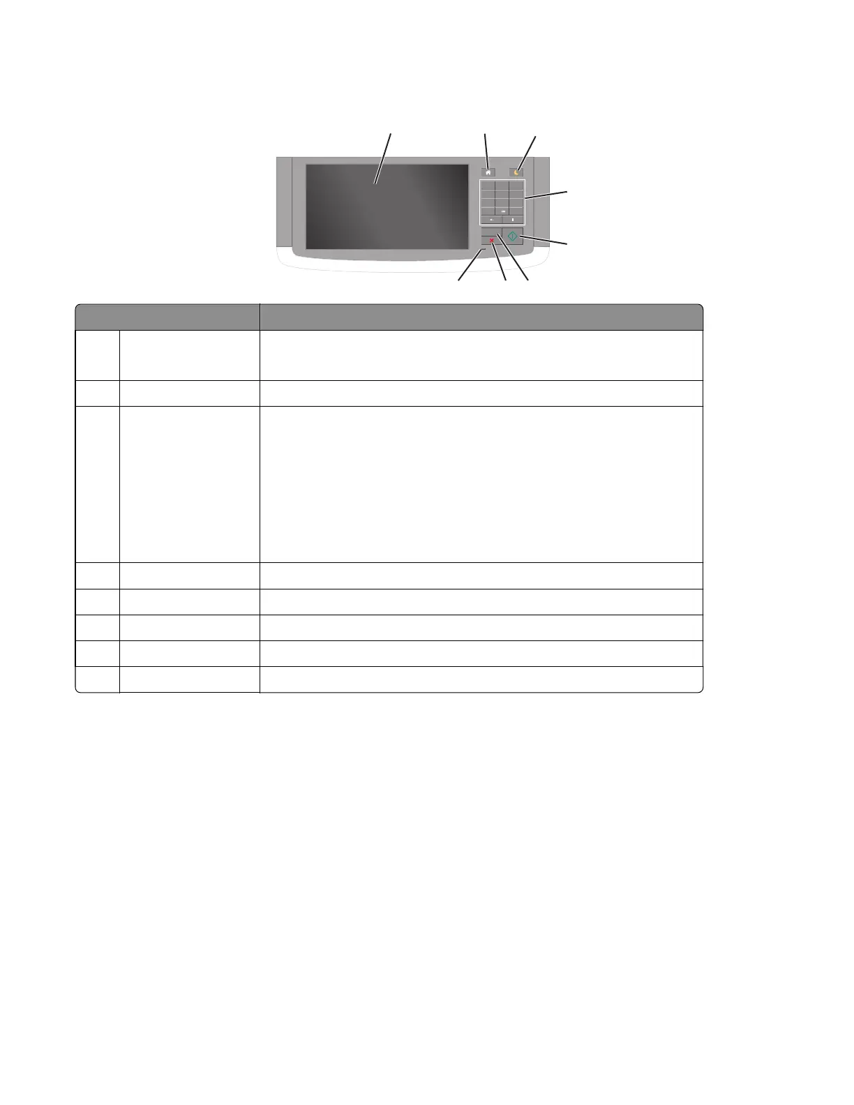 7 Stop or Cancel button Stop all printer activity.