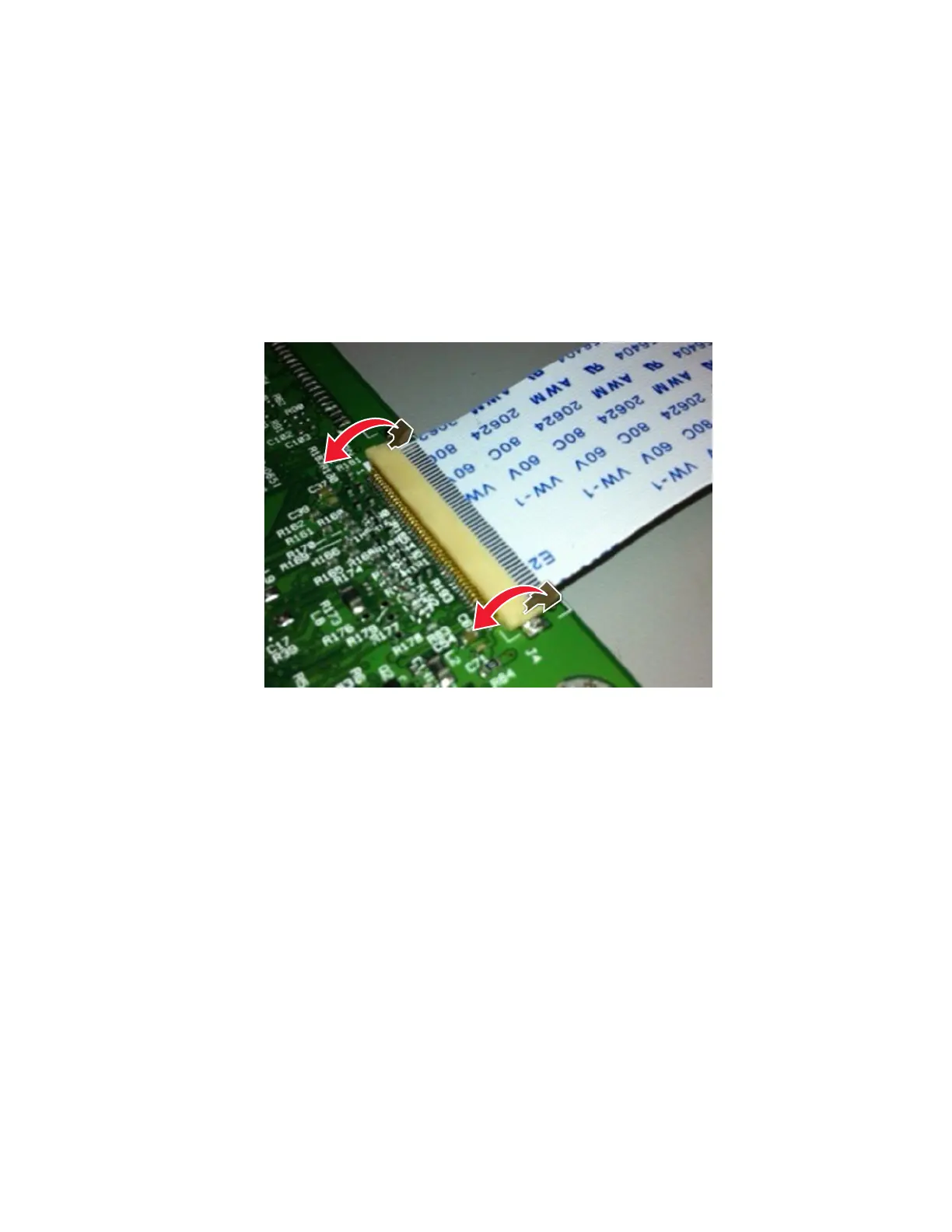 Force (ZIF) connector. The cable is inserted horizontally into the connector.