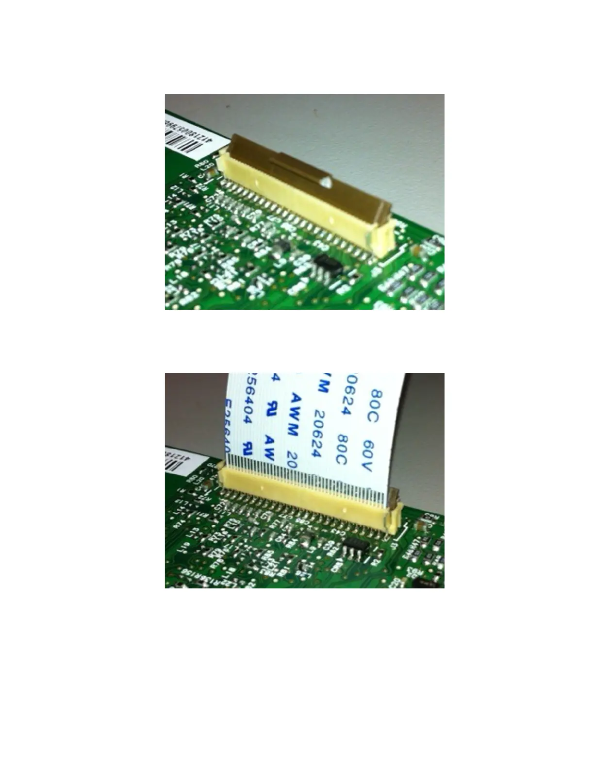 2 Insert the cable with the contacts on the cable away from the locking actuator. Insert the cable on top of the actuator.