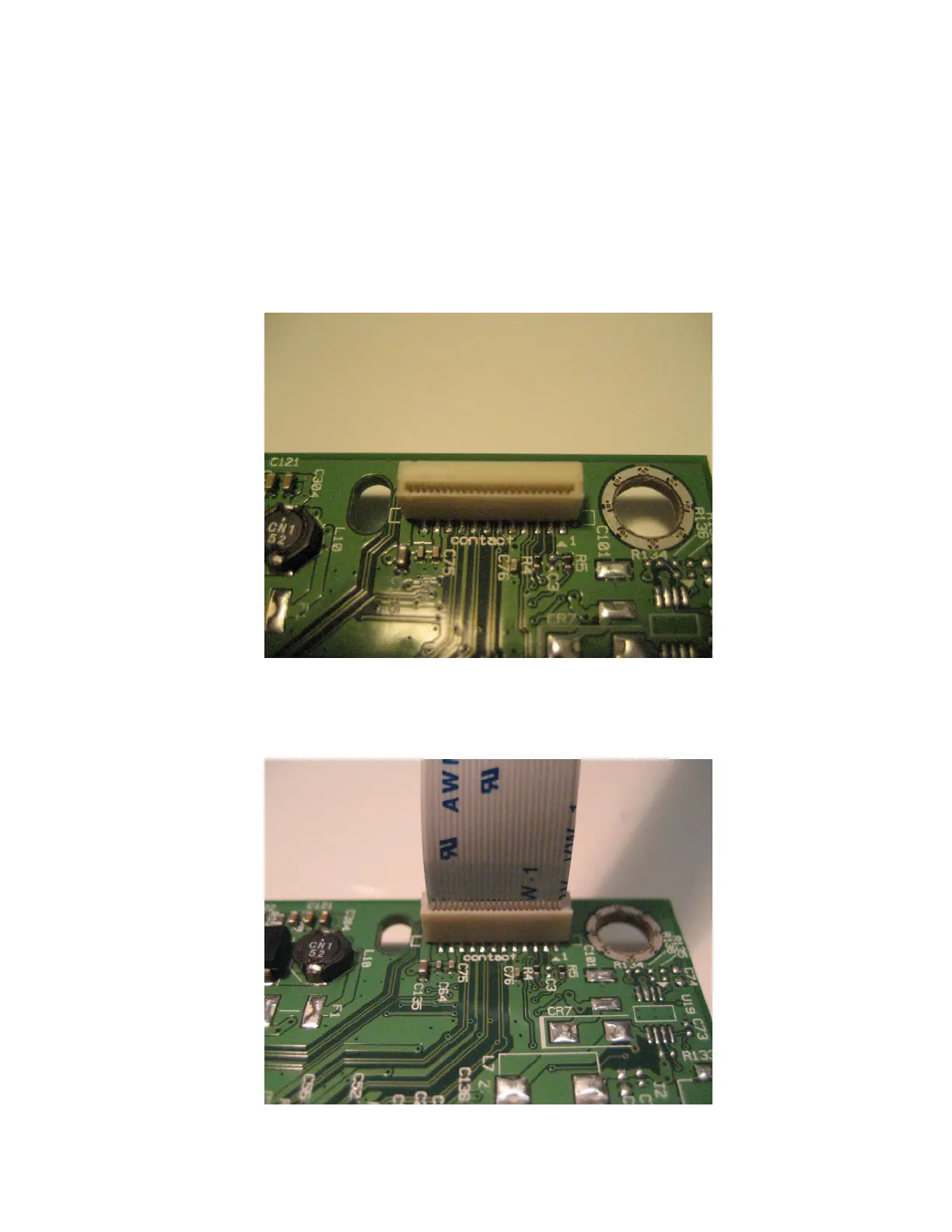 note that the contacts from the board to the connector are located on the side of the connector with the contacts.
