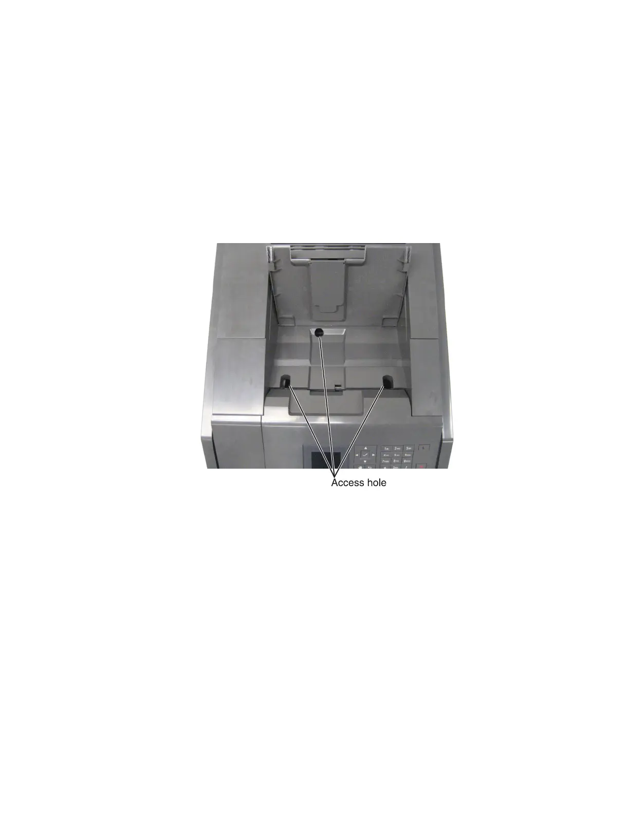 2 Raise the paper support located in the top of the standard bin to its upright position to locate the three access holes