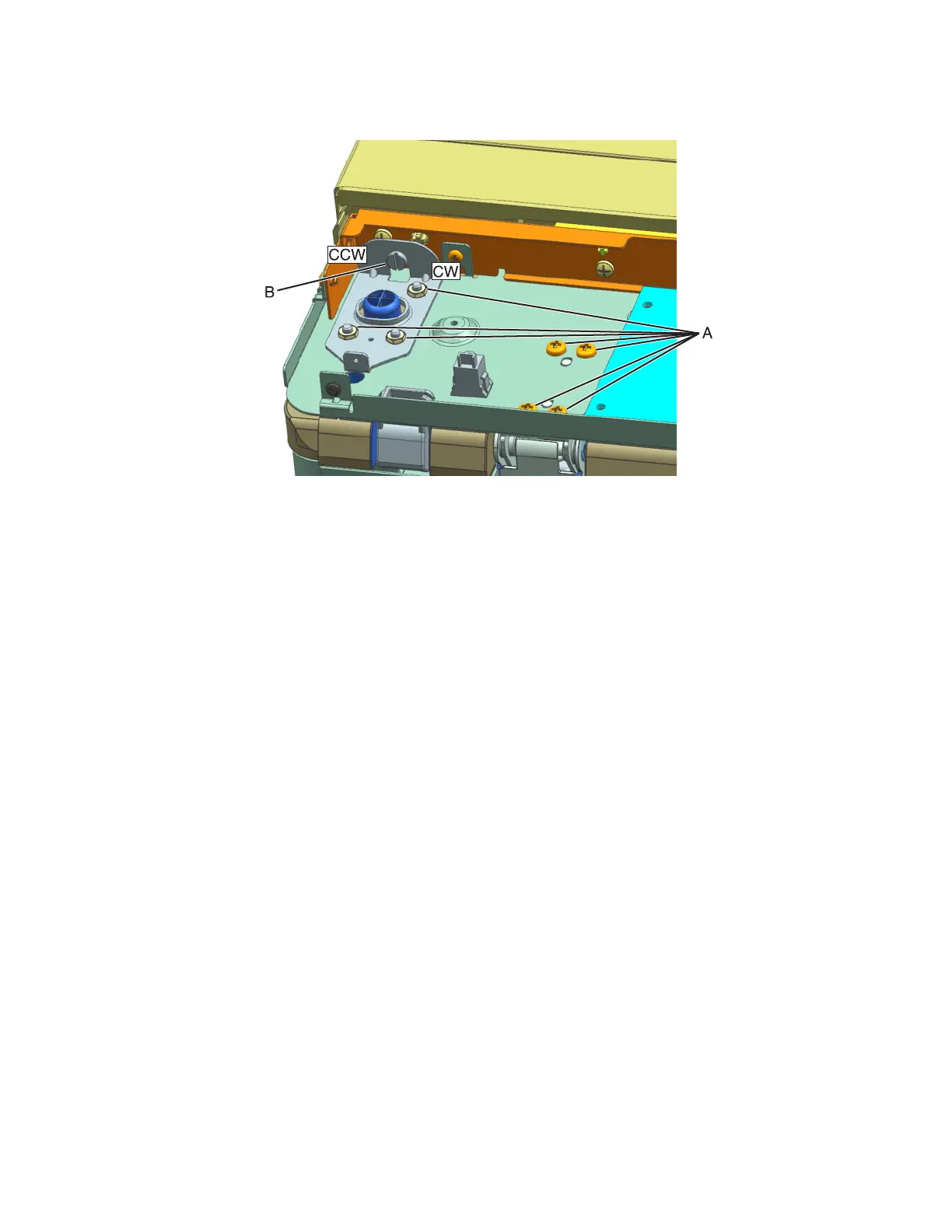 4 Turn the skew adjustment screw (B) appropriately ‑ clockwise for positive skew or counterclockwise for negative
