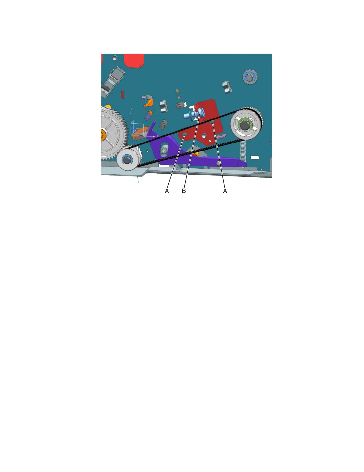 3 Turn the skew adjustment screw (B) appropriately - clockwise for negative skew or counterclockwise for positive