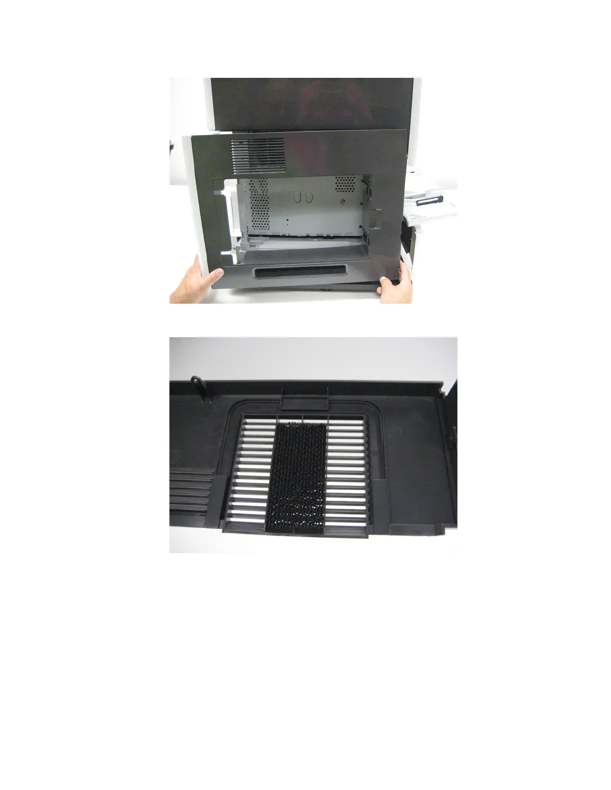 Installation note: When replacing the left cover, ensure that the charcoal filter is properly installed.
