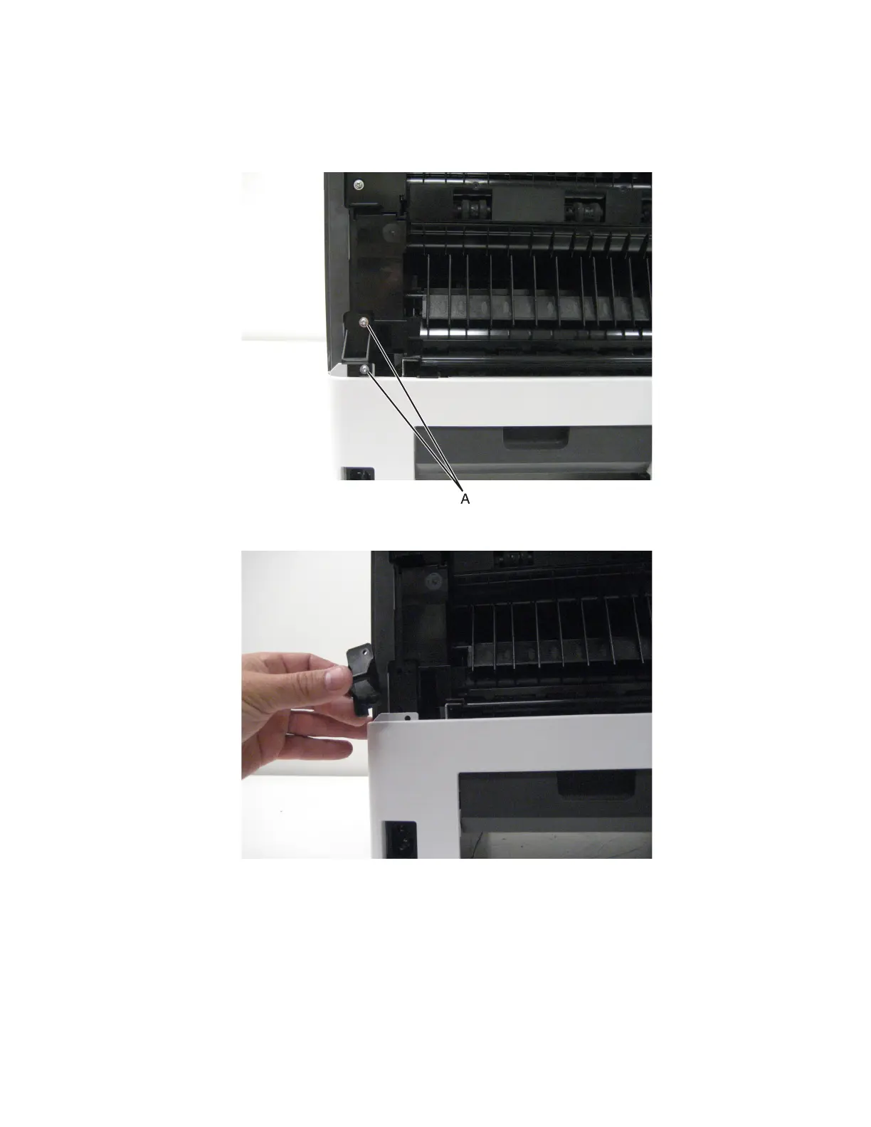 2 Remove the two screws (A) securing the left frame pivot to the machine.