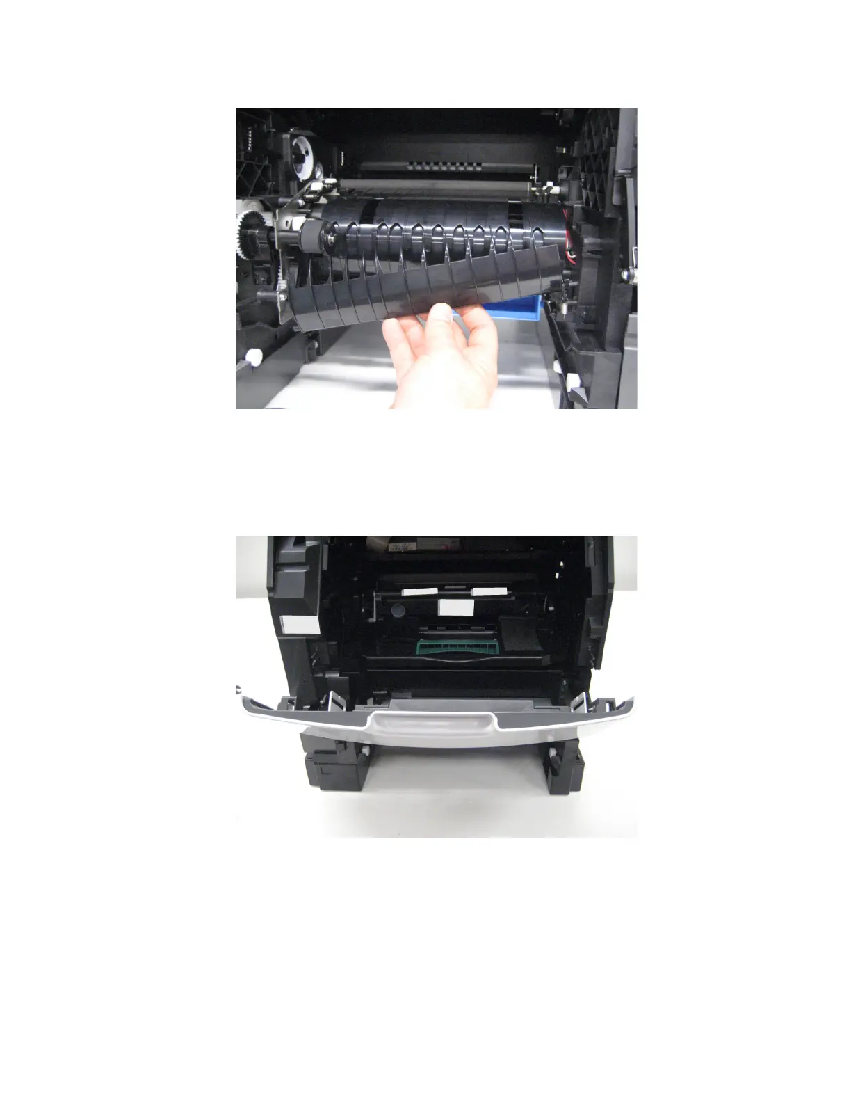 13 Lift the right hinge point, and remove the duplex exit diverter.