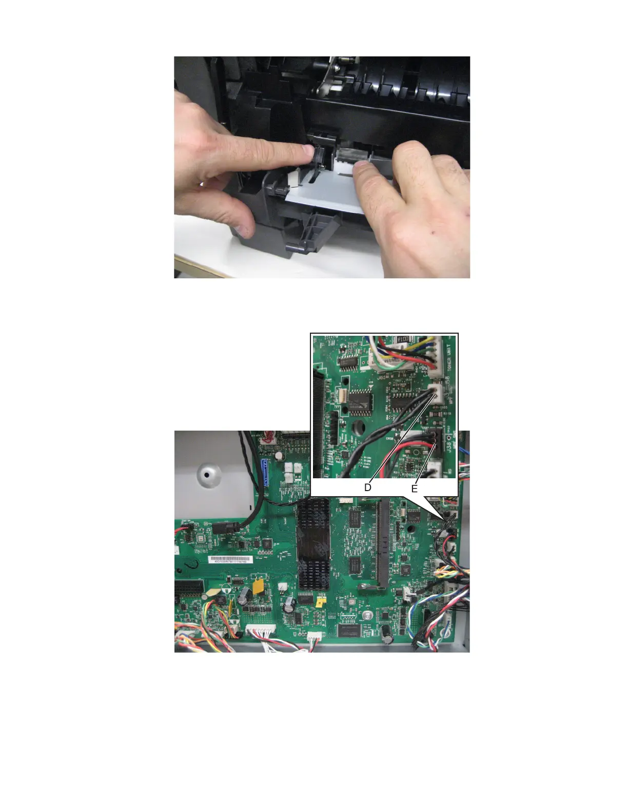 10 Disconnect the MPF feeder lift plate cable - J38 (E).