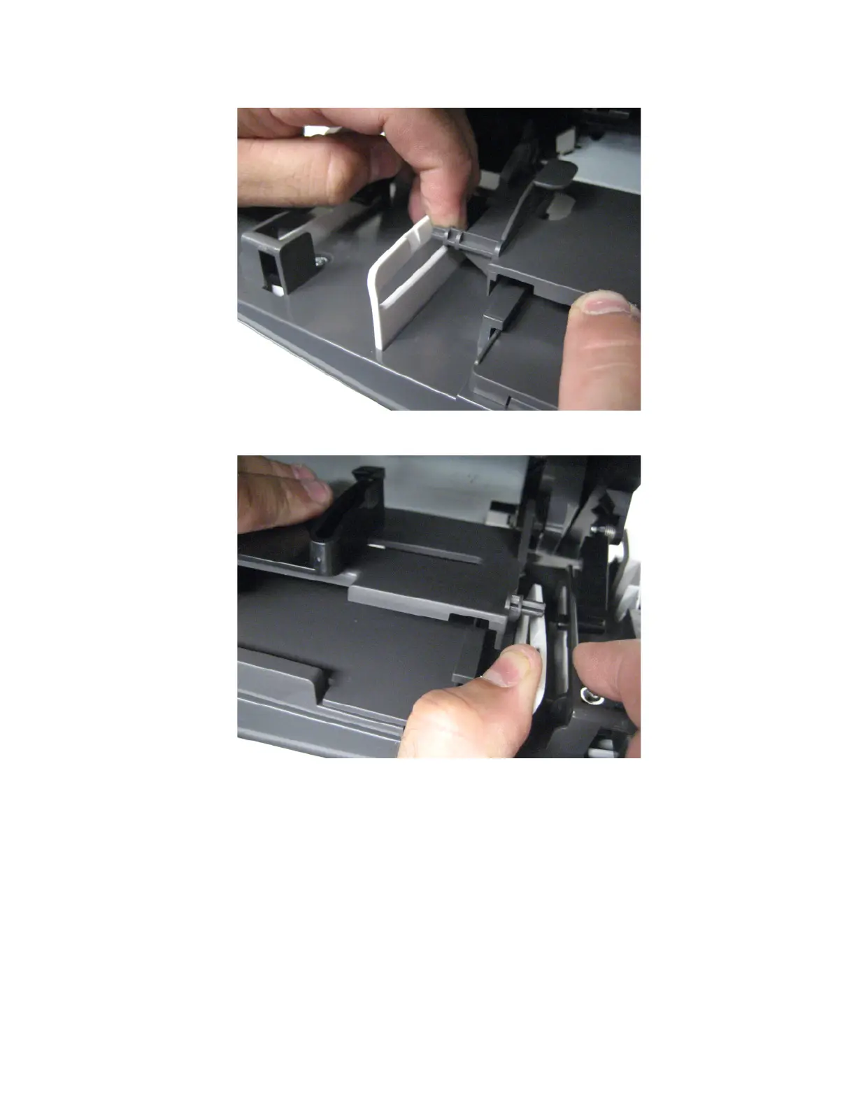 4 Gently flex the right bracket and detach the right side of the MPF tray.
