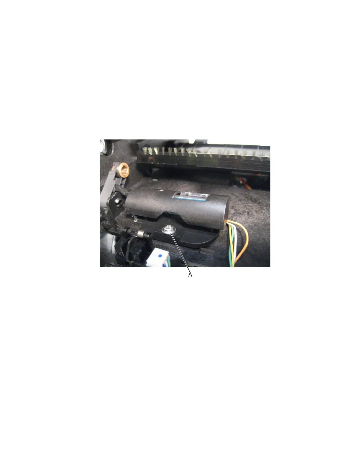 13 Remove the screw (A) securing the sensor (toner density) to the machine.