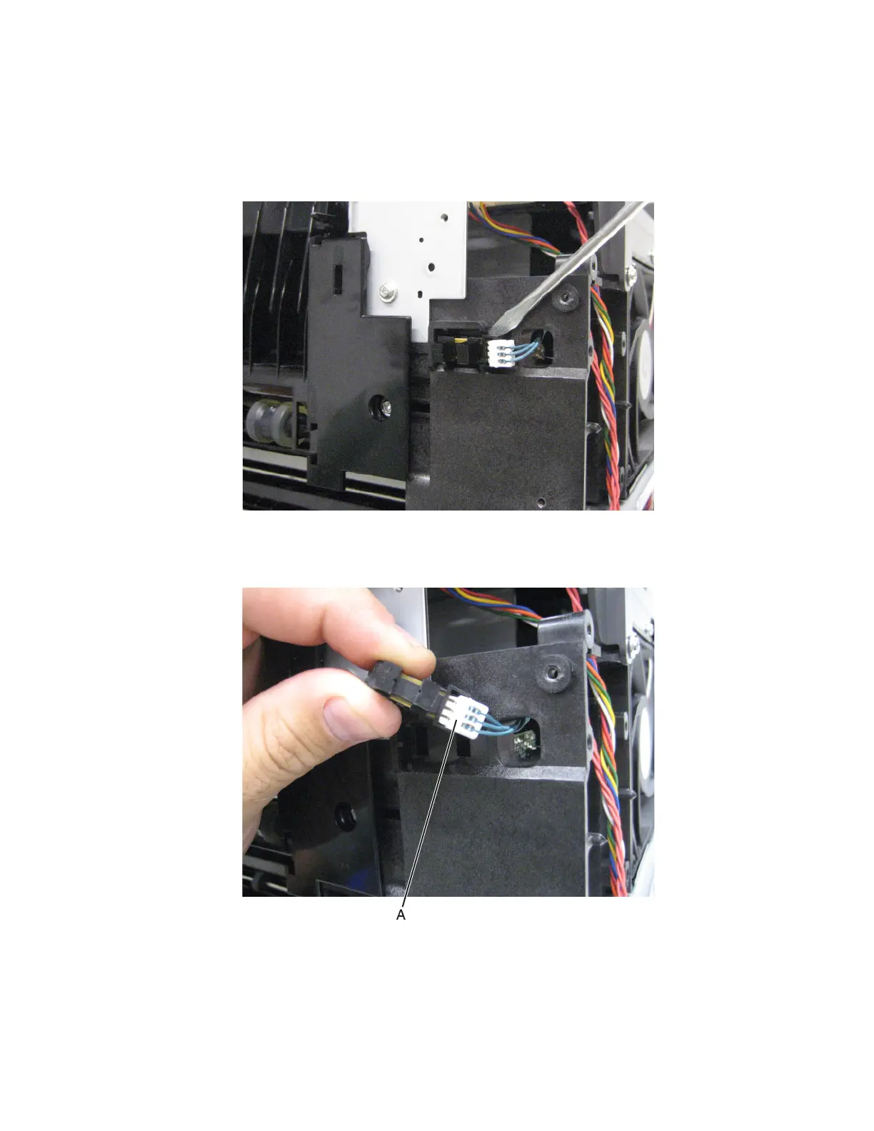 4 Disconnect the cable (A) from the sensor (rear door interlock).