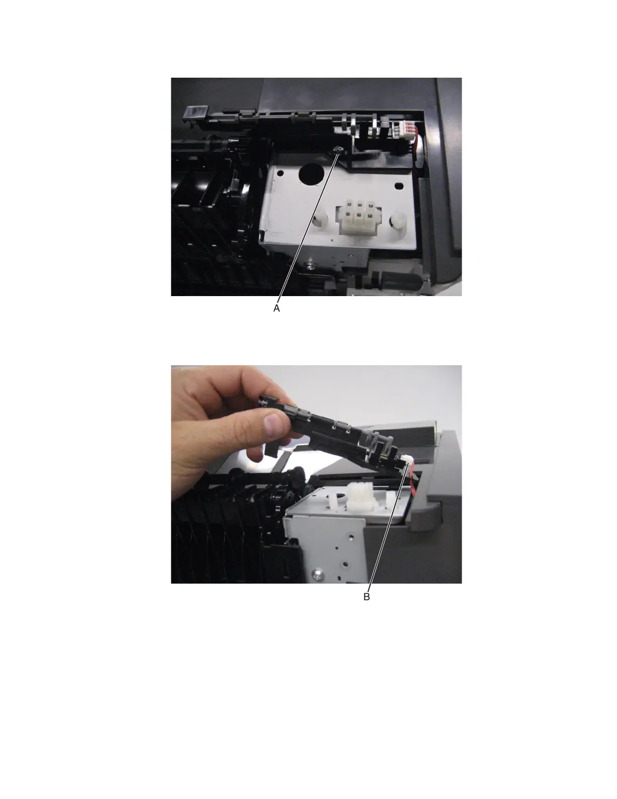 4 Remove the screw (A) securing the sensor (standard bin full) to the machine.