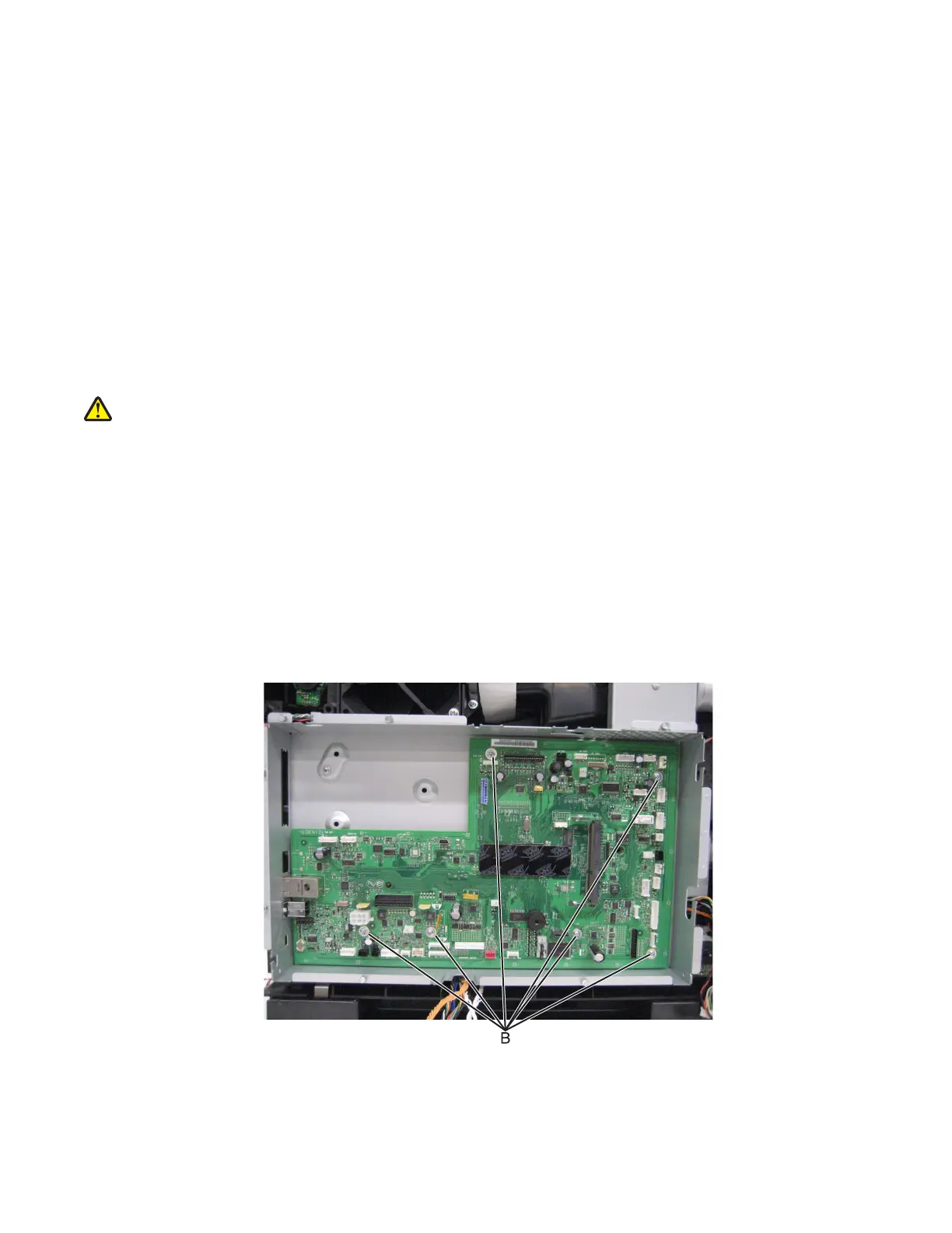 7 Remove the six screws (B) securing the controller board to the machine.
