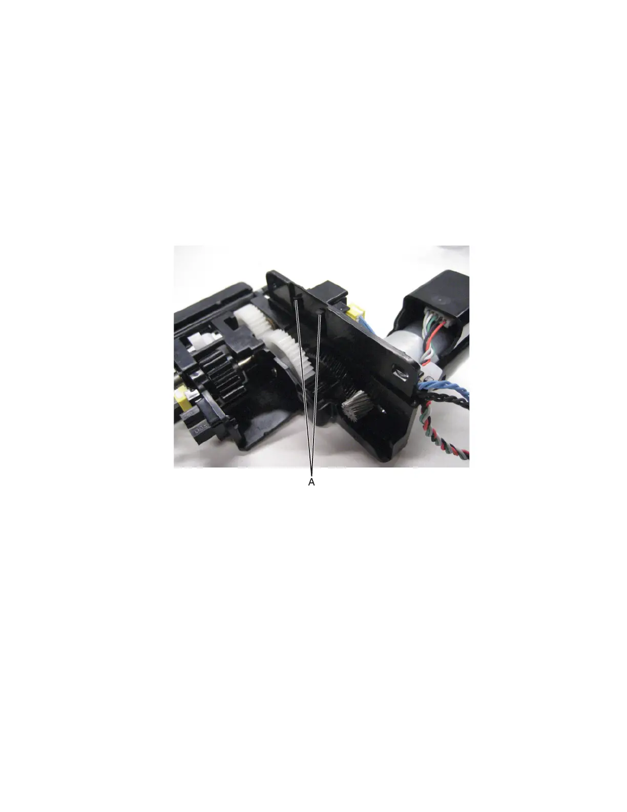 8 Release the hooks (A) securing the sensor (pick roller position) to the assembly.