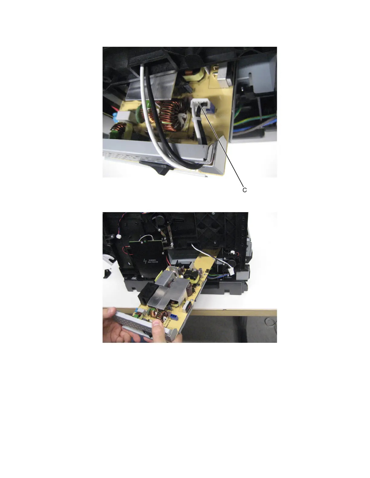 6 Disconnect the fuser power cable (C) from the LVPS.