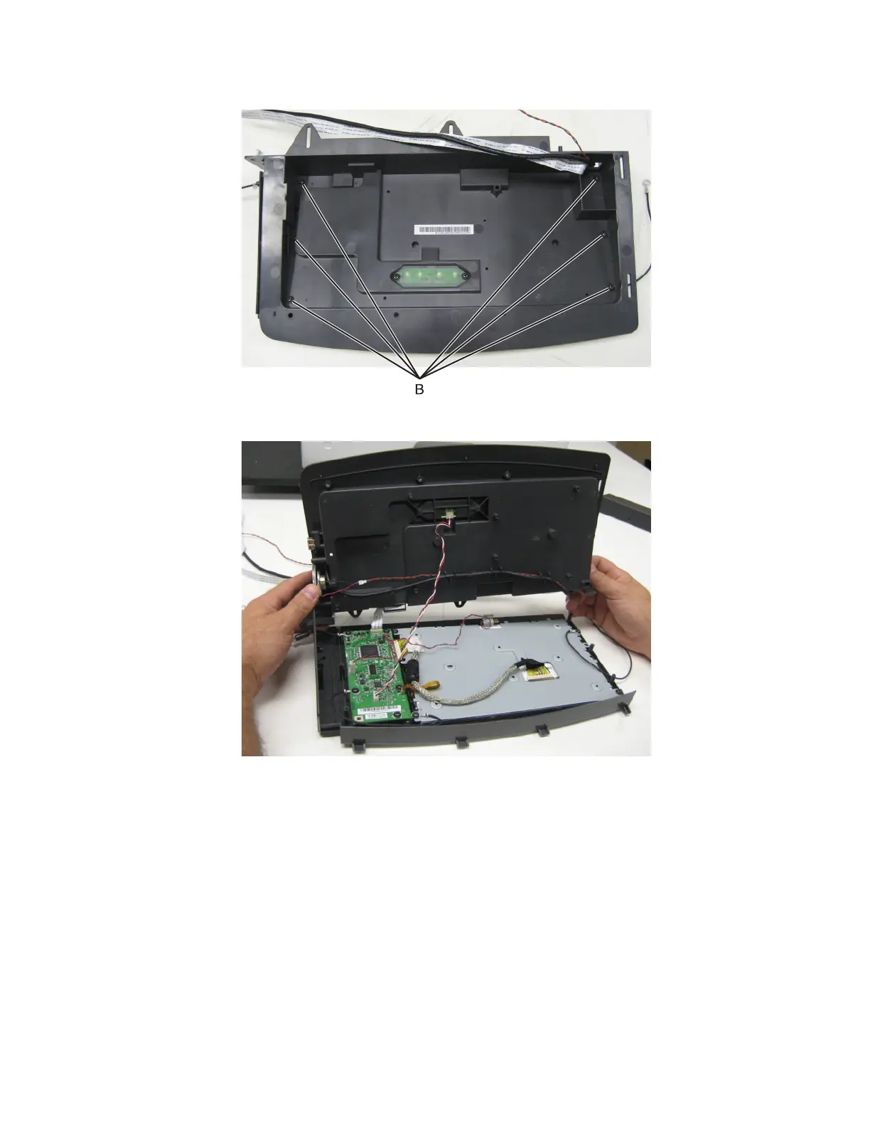 12 Remove the six screws (B) securing the bottom cover to the assembly.