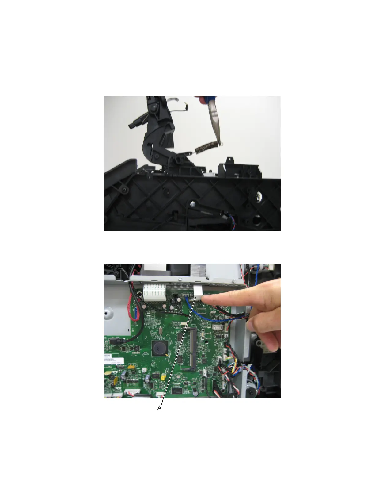 12 Disconnect the control panel ribbon cable (A) from the controller board.