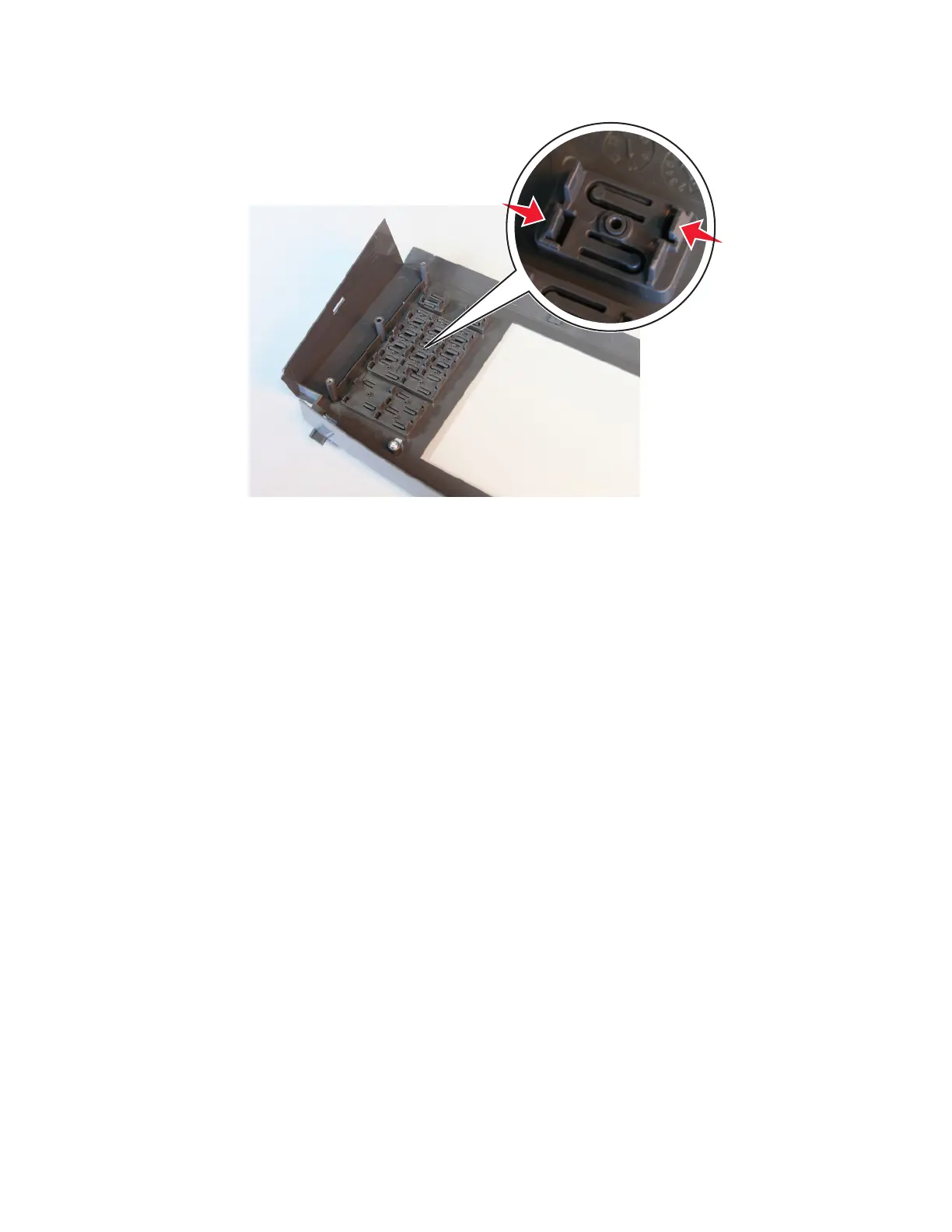 3 Push the latches inwards to release, and then remove the button.