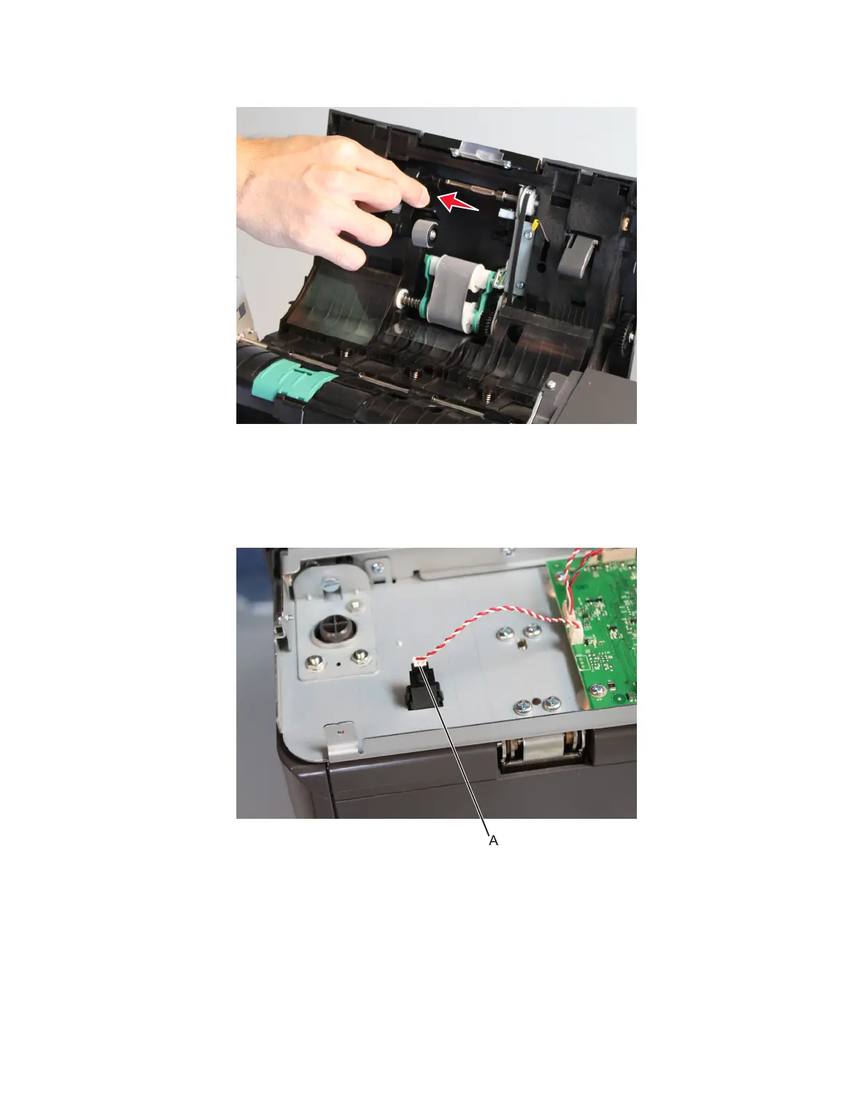 1 Remove the ADF rear cover. See “ADF rear cover removal” on page 470.