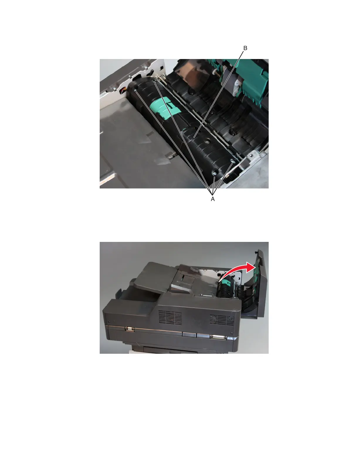 3 Remove the ADF separation guide (B).
