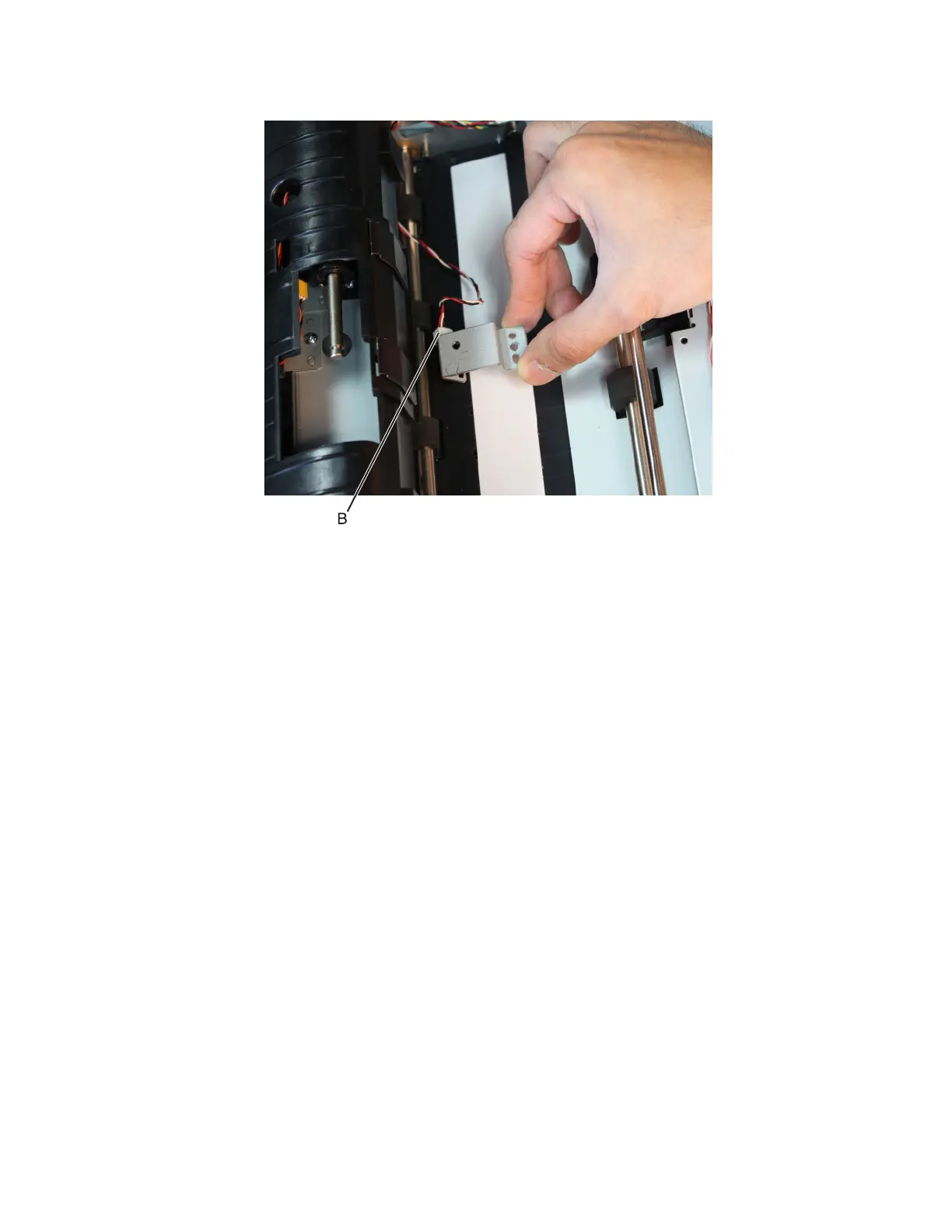 4 Pull the sensor bracket to access the sensor. Disconnect the cable (B).