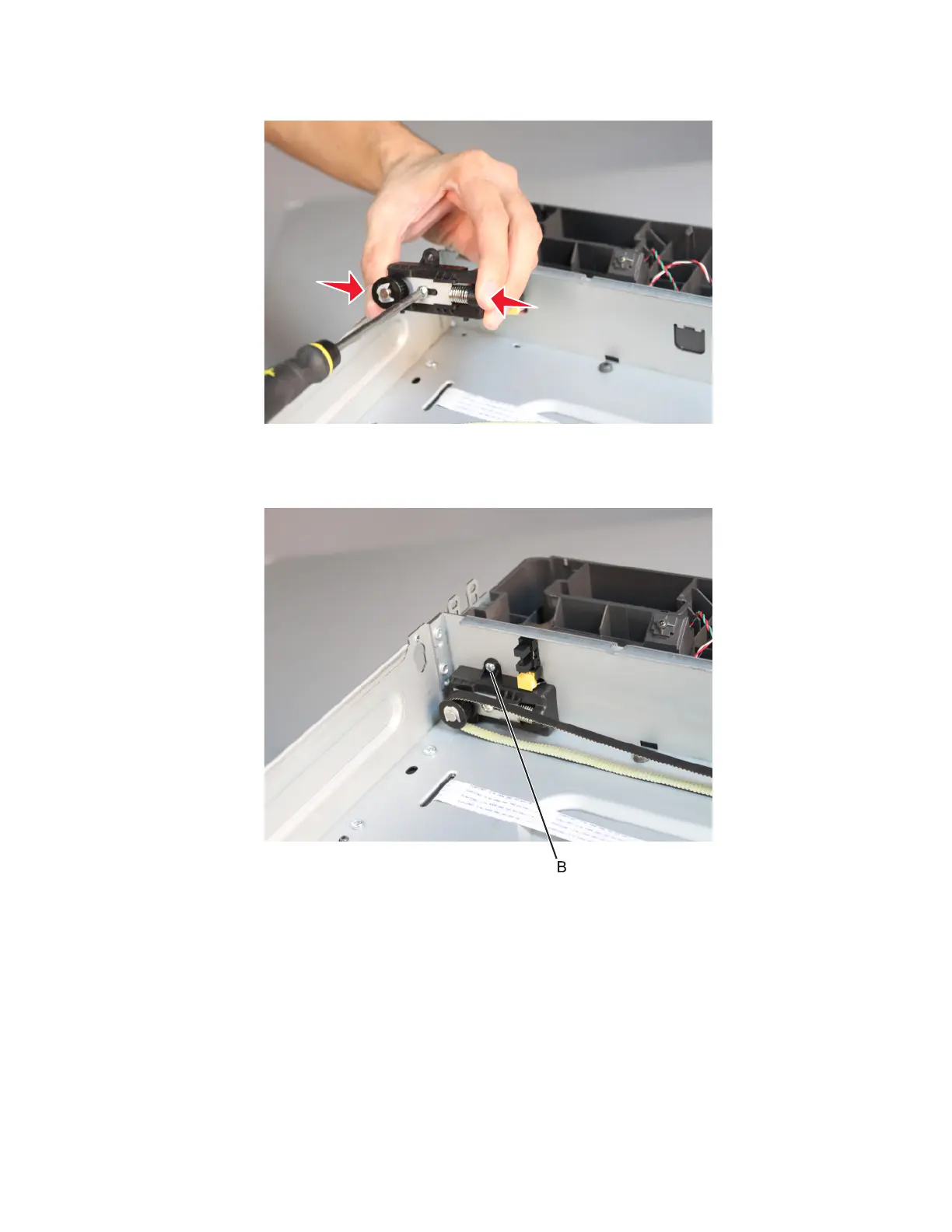 b Squeeze the pulley, and then tighten the adjustment screw.