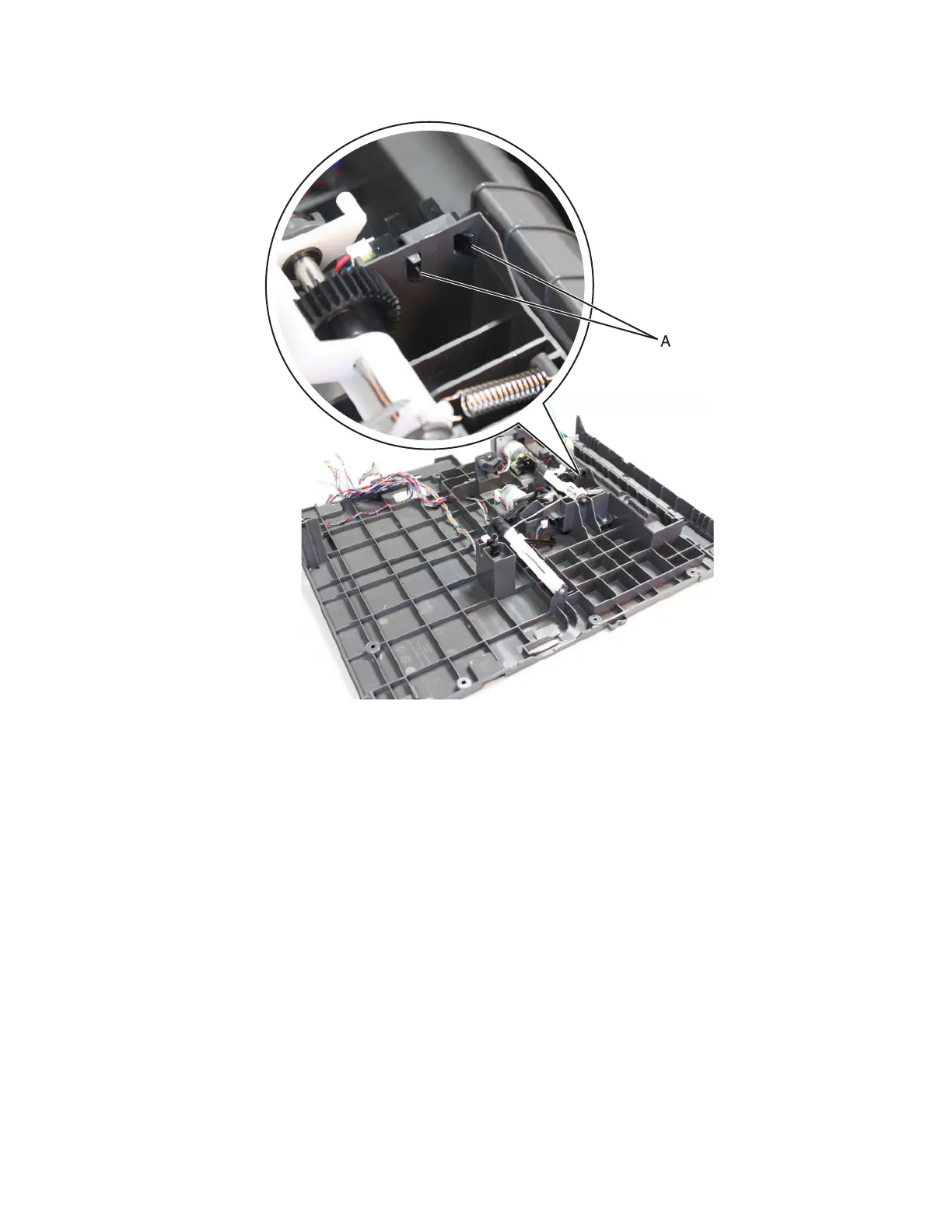 5 Release the latches (A) holding the sensor to the media feeder.