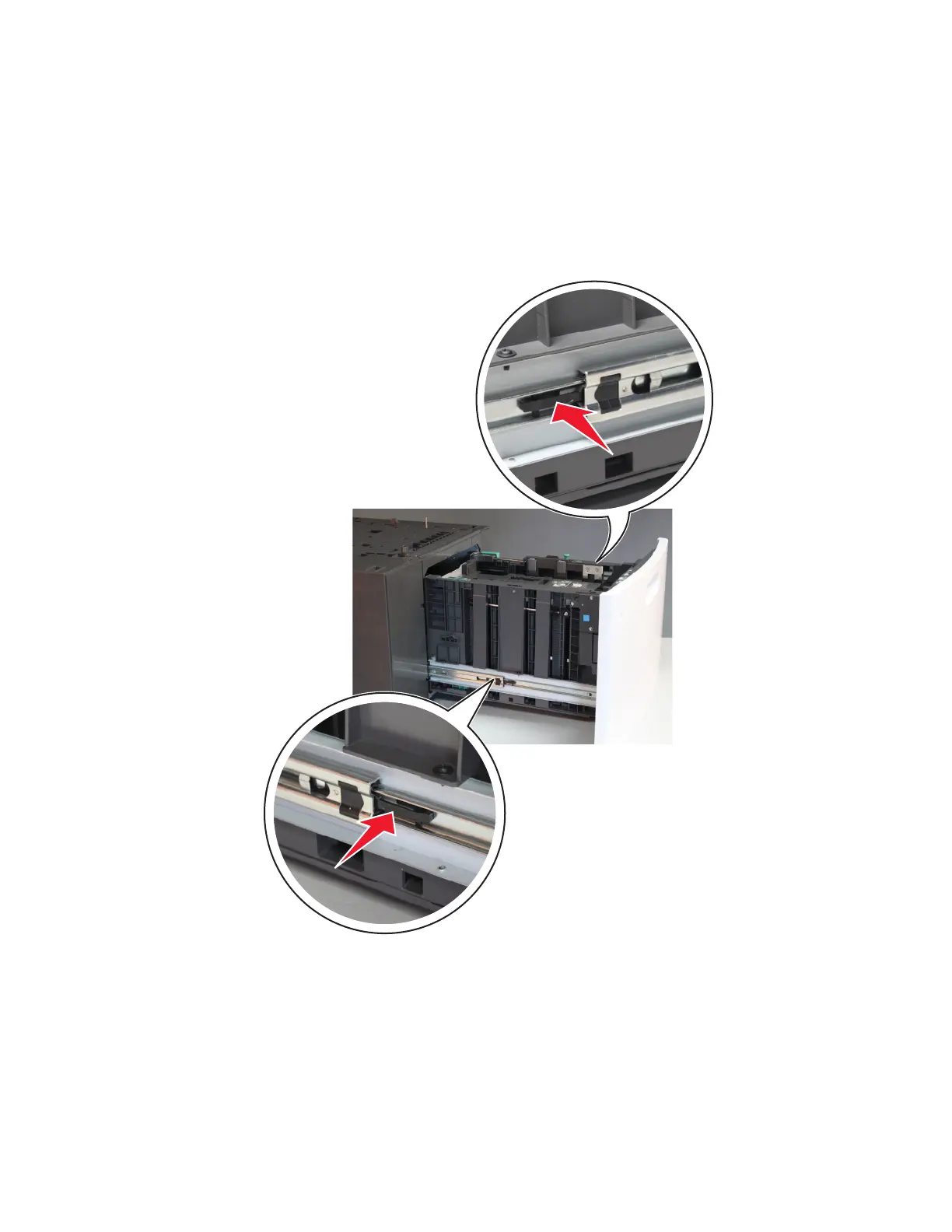 1 Fully extend the tray, then press the left and right latches to release the tray.